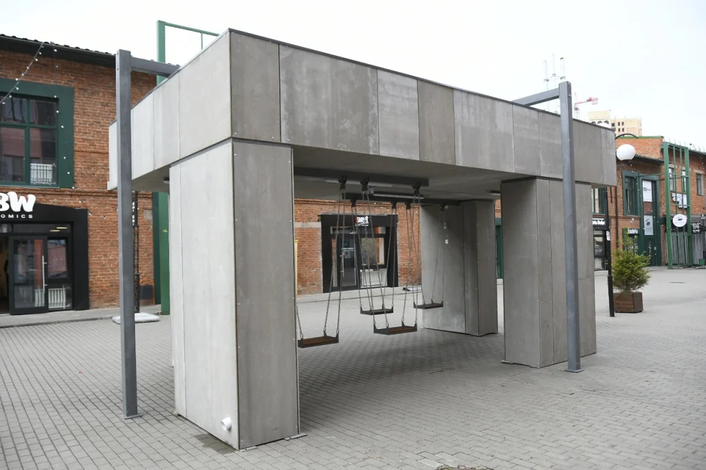 В Туле на территории Ликерки Лофт появился арт-объект. Теперь на аллее «Ликерки» можно покачаться на качелях в стиле лофт.