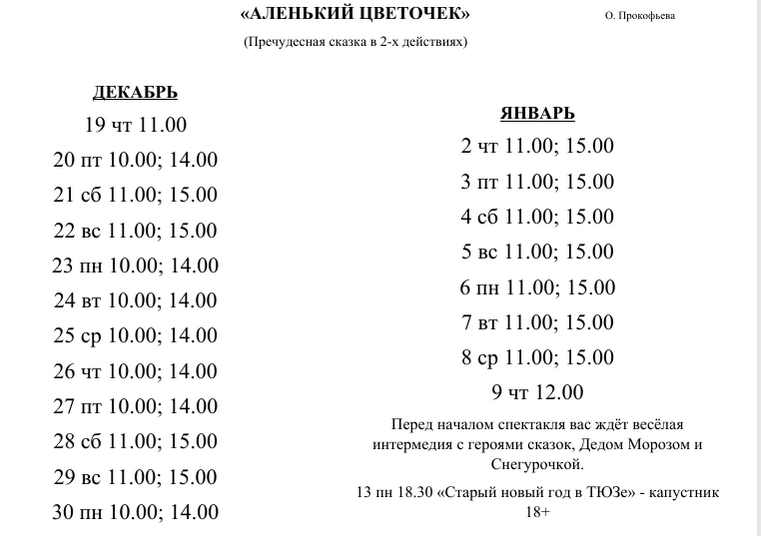 Тульский областной театр юного зрителя приглашает юных туляков и их родителй на представления в декабре, а также на новогоднюю сказку «Аленький цветочек».