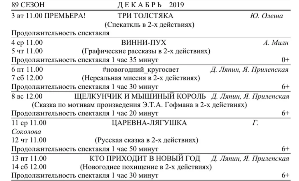 «Центр 71» публикует афишу ТЮЗа на декабрь 2019 года: