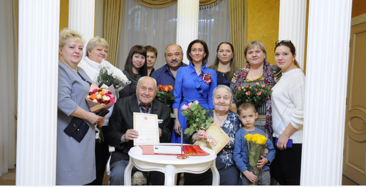 В Туле во Дворце бракосочетания сотрудники комитета с 60-летним юбилеем супружеской жизни туляков Касич Виталия Игнатовича и Зинаиду Ивановну.