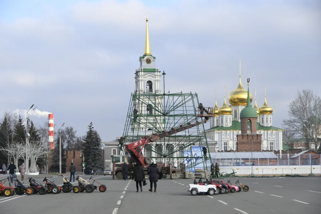 В Туле на главной площади начали устанавливать новогоднюю елку