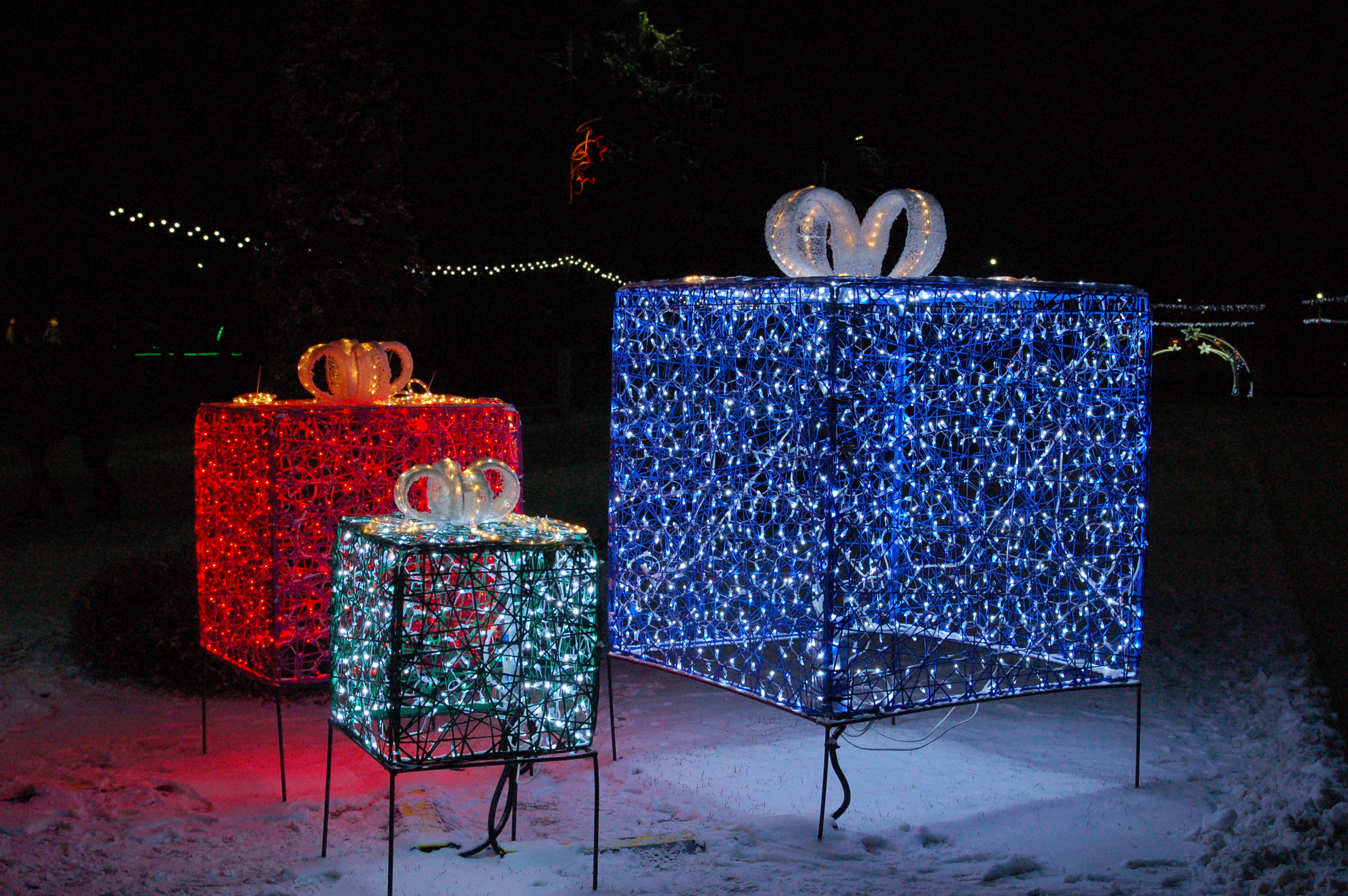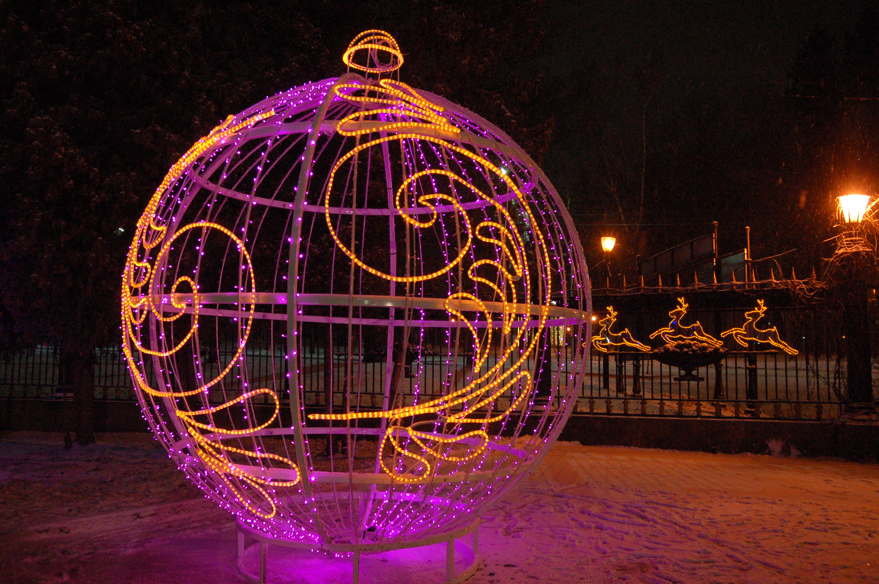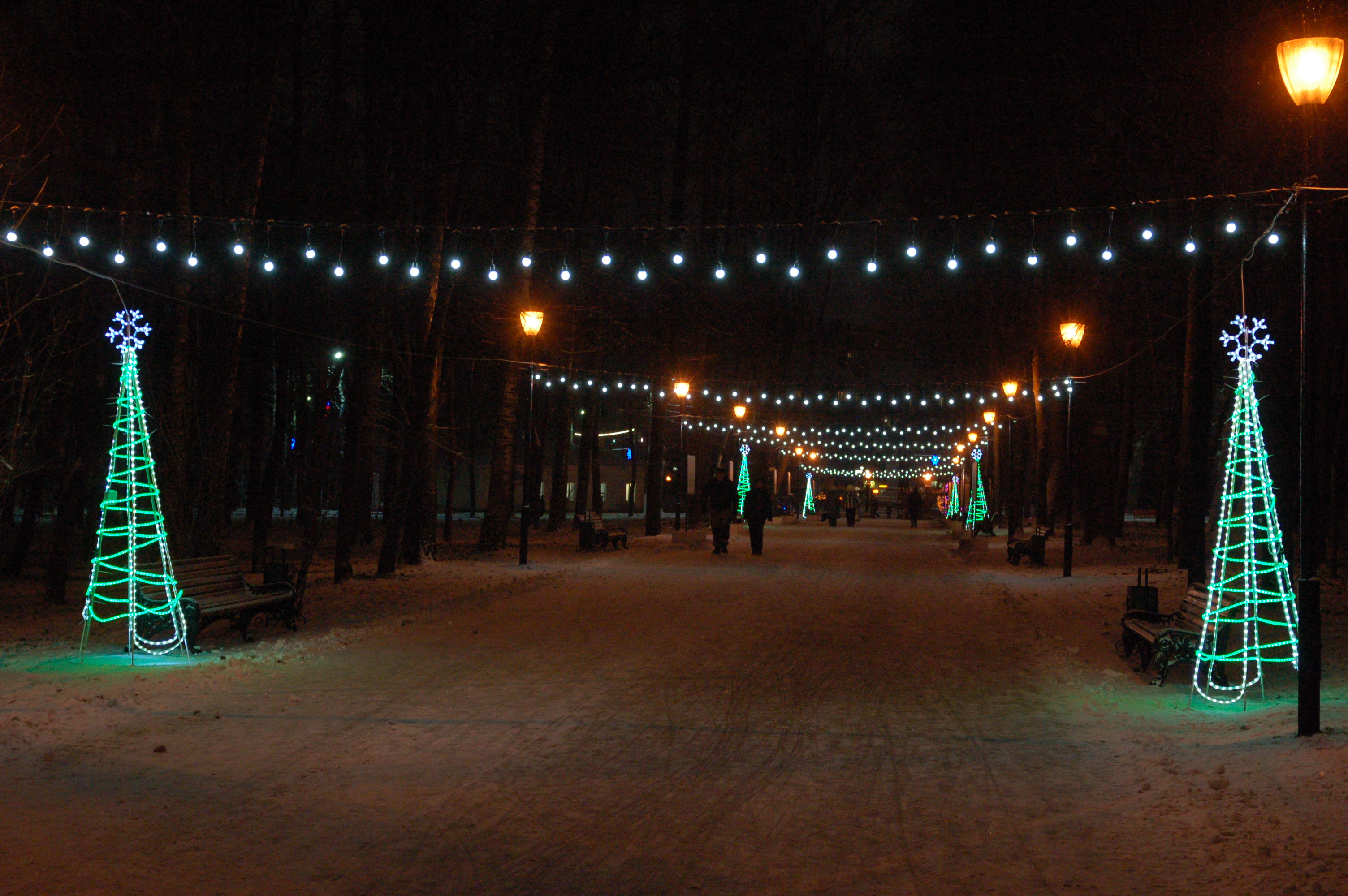 Аллеи всех парков города с наступлением сумерек засверкали новыми световыми конструкциями, дизайнерскими елками и гигантскими шарами.