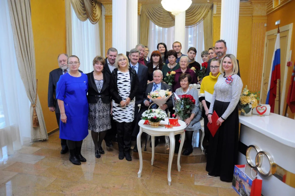 Юбиляры поставили подписи в "Почётном акте бриллиантовых юбиляров", обменялись обручальными кольцами, символизирующие бесконечность их семейного союза. Торжество семейного союза разделили родные и близкие юбиляров.