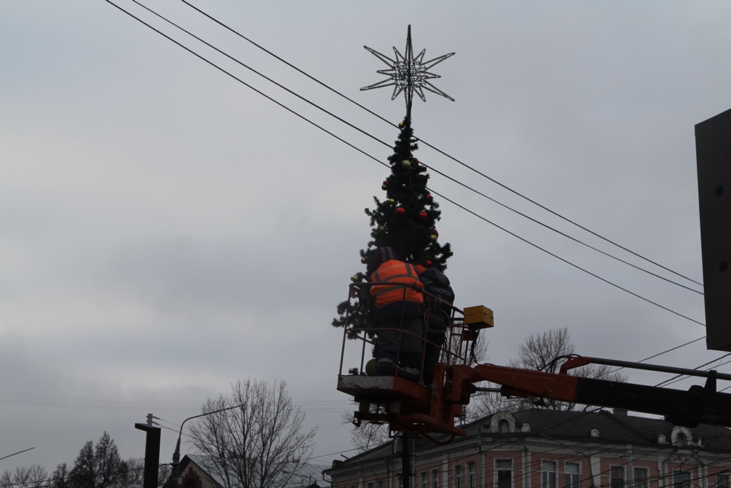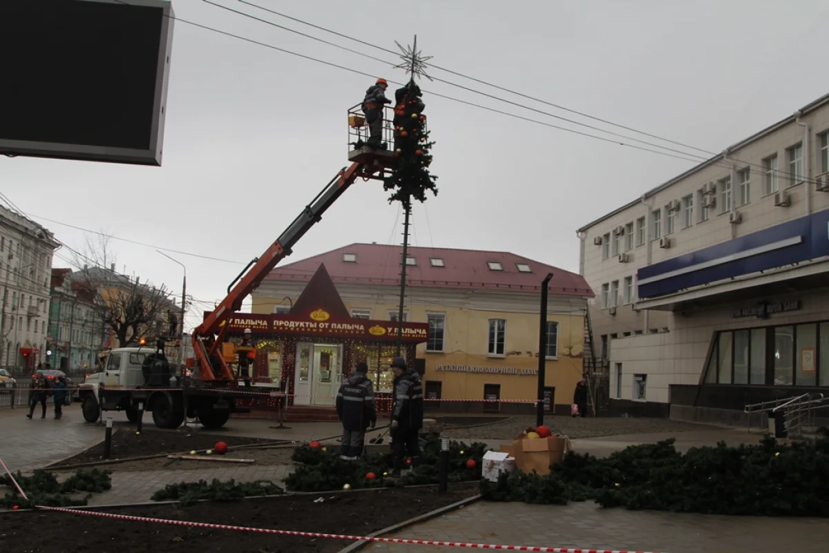 Площадь перед Главпочтамтом в Туле украшают к Новому году