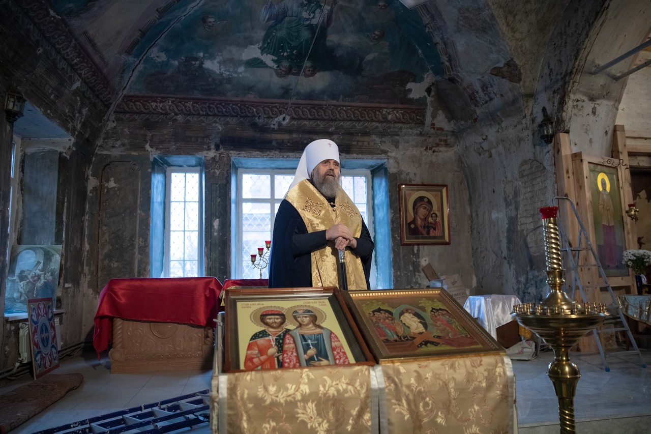 В Туле установят новый шпиль на колокольне храма Рождества. Сегодня, 18 декабря, Митрополит Тульский и Ефремовский Алексий освятил новый купол.