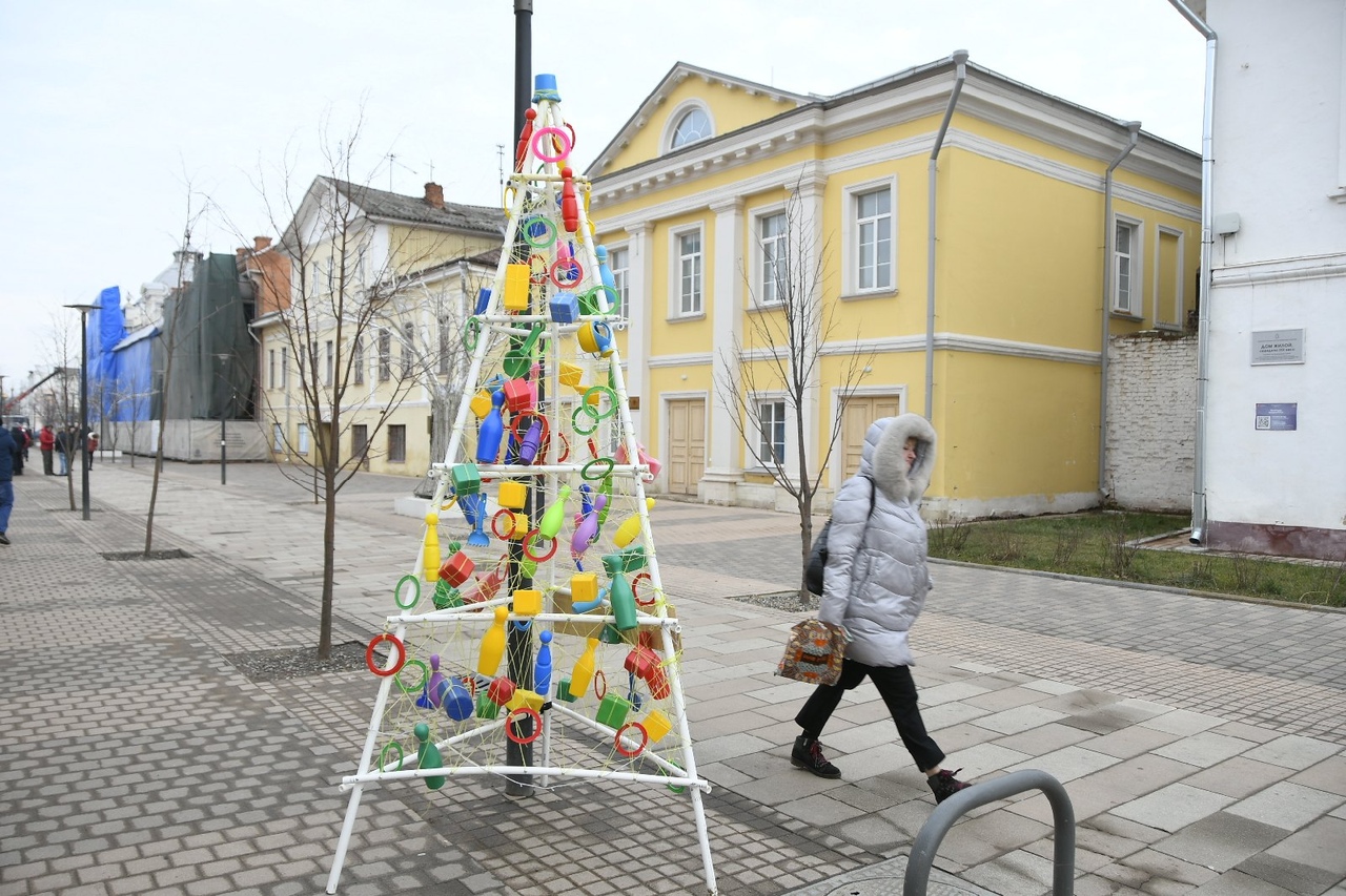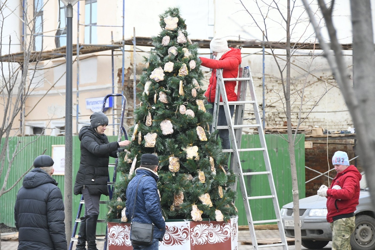 В Туле на улице Металлистов начали наряжать необычные новогодние елки. Напомним, с 27 декабря по 6 января там будет проходить фестиваль-смотр креативных елок. А пока проходит этап украшения и установки елей.