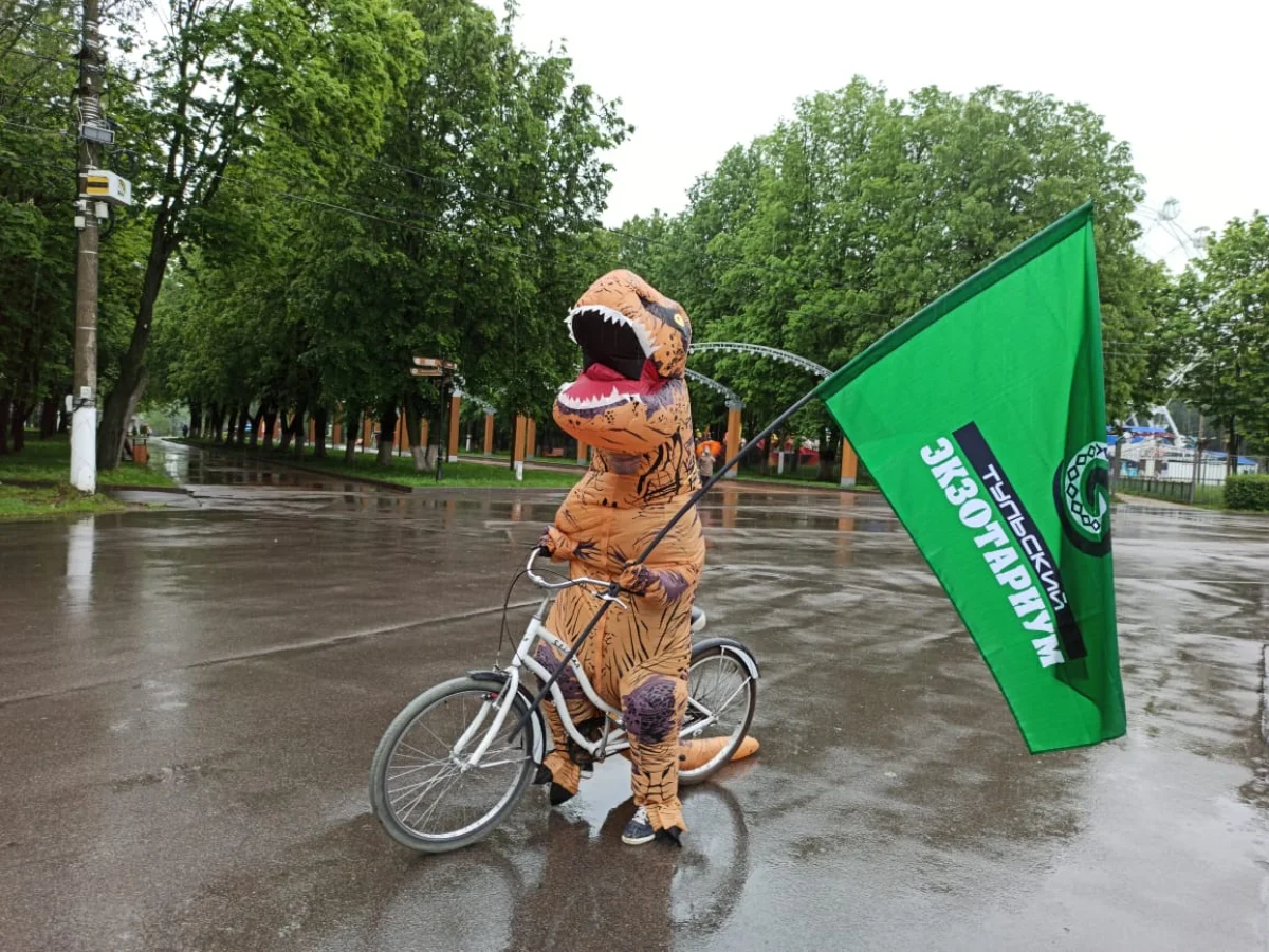 Тираннозавр проехался на велосипеде по Центральному парку Тулы