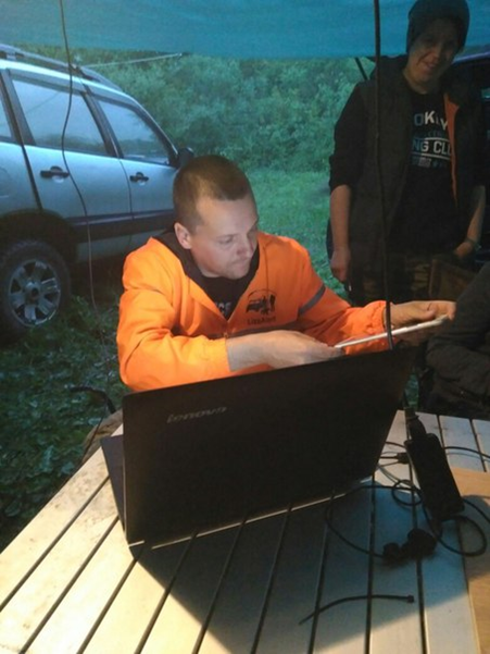 Старшая поисковой группы Ирина «Воланс» и новичок отряда Родион получили «лесную» задачу: пройти вдоль ручья к соседнему населенному пункту, параллельно работая «на отклик». Заросли борщевика повсюду окружали спасателей, а земля в лесу была сырой, но, к счастью, небо этой ночью было ясным. Через пару часов после очередного протяжного «Ви-и-итя-я-я» послышался чёткий отклик. Отряд незамедлительно действовал по инструкции: доложили в штаб, отметили точку, передали координаты и азимут. Наконец, спасатели двинулись на звук и примерно через 50 метров нашли дедушку, который уже и не верил, что выберется из леса живым.