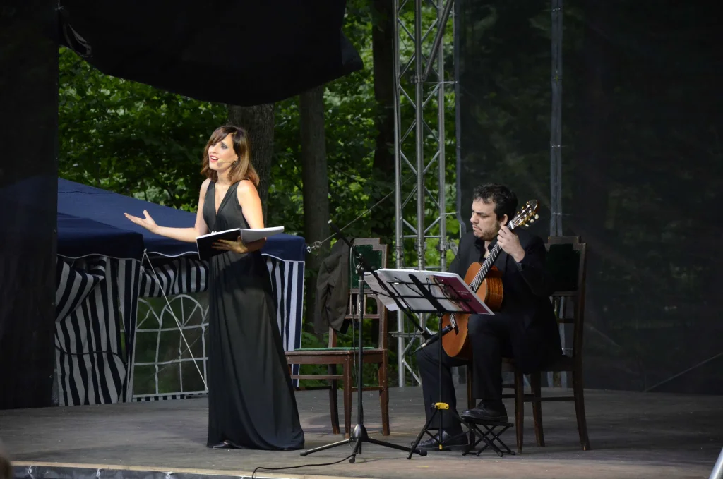 Затем вечер продолжился в атмосфере гитарной музыки и прекрасного сопрано. Певица Мариви Бласко и гитарист Хавьер Сомоза выступили с концетром "Сервантес и золотой век испанской музыки"- это программа, которая была созданна специально для фестиваля