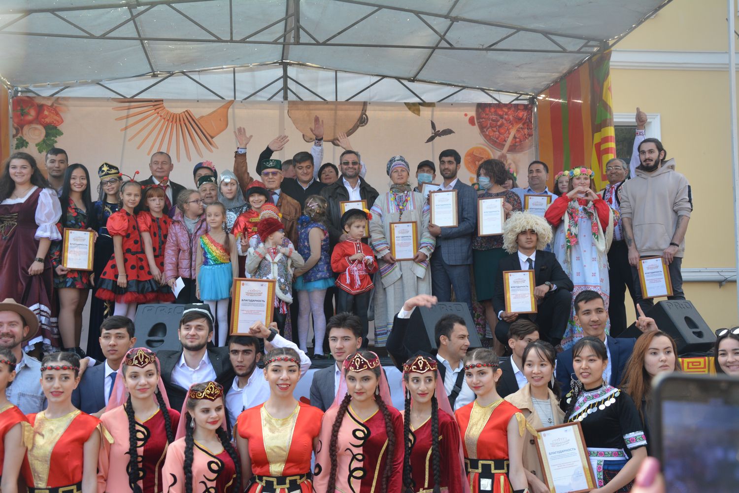 На сцене состоялись выступления национальных творческих коллективов и отдельных исполнителей с народными песнями, инструментальными композициями и танцами. Колорит национальных костюмов и флагов придали празднику особый колорит и атмосферу всеобщего единения.