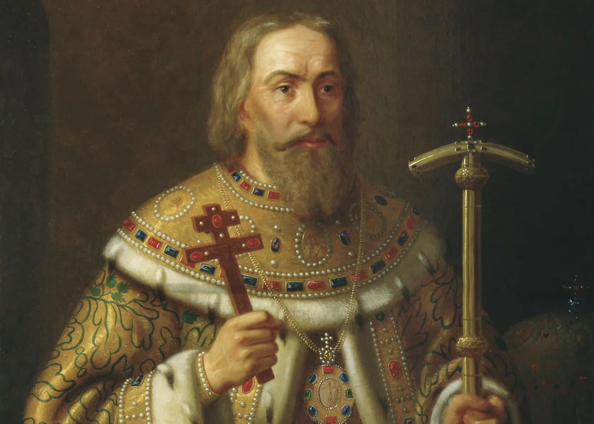 24 июня 1619 года, после семилетнего периода так называемого «межпатриаршества», на первосвятительскую кафедру был возведен митрополит Филарет. Патриарх Филарет (в миру Феодор Никитич Романов-Юрьев) родился около 1553 года, принадлежал к одному из видных боярских родов, был родственником Иоанна Грозного (сыном боярина Никиты Романовича Юрьева-Захарьина, родного брата первой супруги Иоанна Грозного царицы Анастасии Романовны).