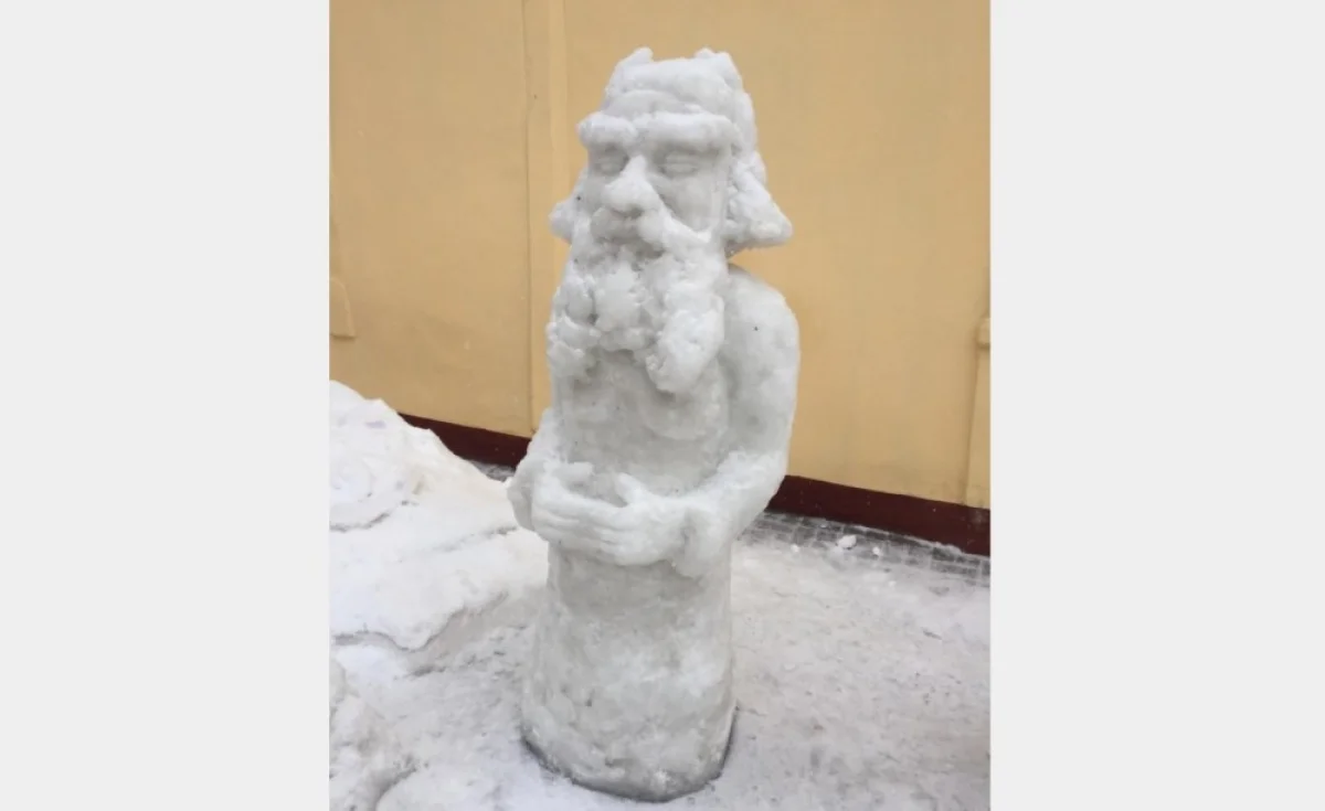 Дед Мороз из снега в образе тульского писателя Льва Толстого появился в Калуге