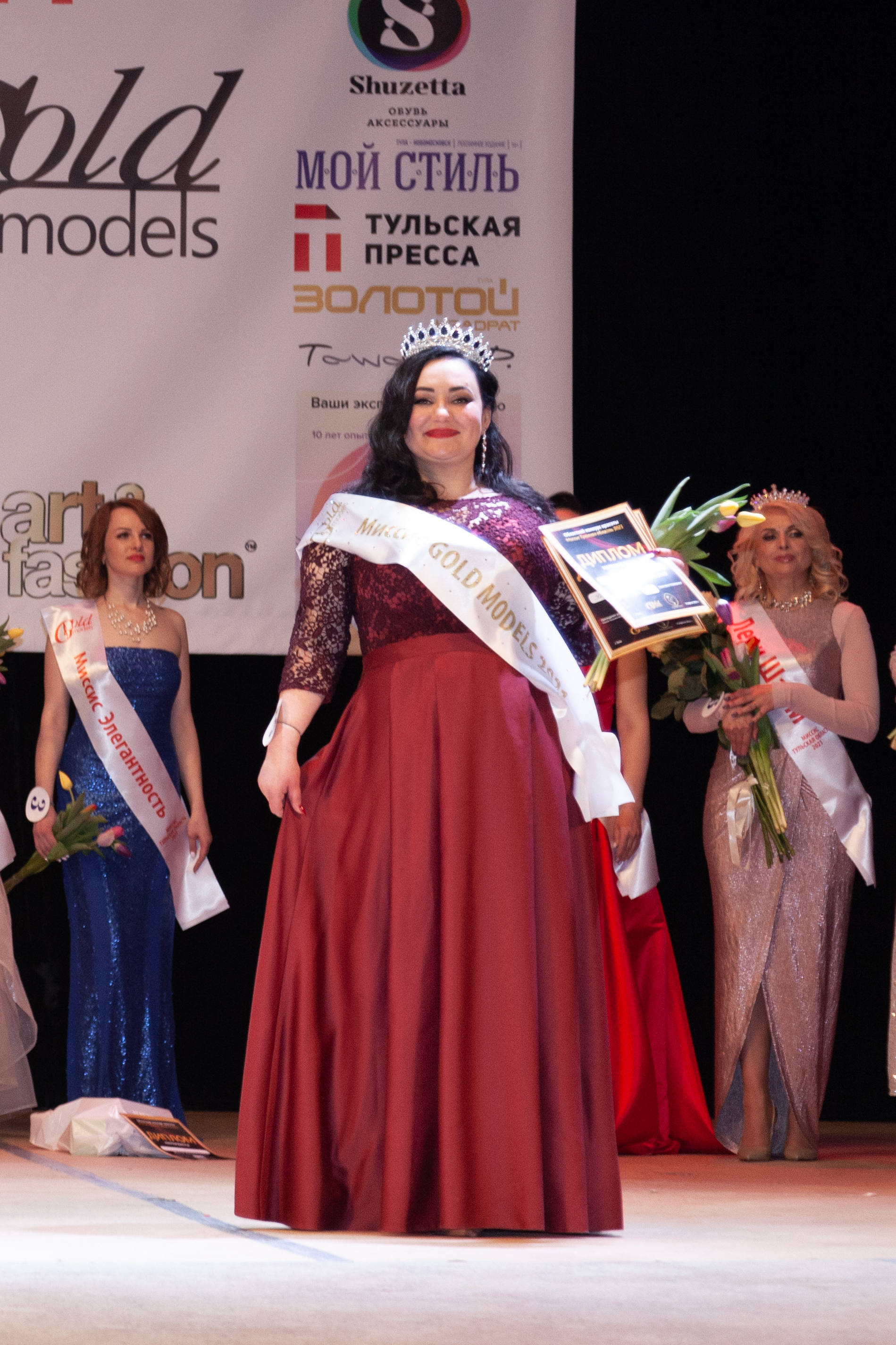 Главные титулы и короны распределились следующим образом: достойной обладательницей драгоценной короны и титула «Миссис Тульская область-2021» стала 24-летняя Софья Силецкая, титул «Миссис Тула-2021» жюри присудило 35-летней Екатерине Угнивенко, " Первая Вице Миссис Тульская область-2021″ — Виктория Буравцова (36 лет), «Вторая Вице Миссис Тульская область-2021» — Оксана Гузбанд (36 лет), а титула «Миссис GOLD MODELS» удостоилась Светлана Комиссарова (37 лет).