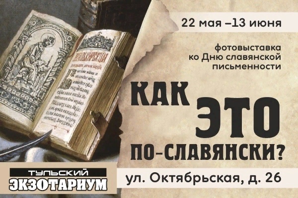 С 22 мая на старой экспозиции тульского экзотариума открыта фотовыставка «Как это по-славянски?». Современная письменность и лексика сильно отличаются от речевых норм былых времён. С тех пор многое поменялось и утратилось, но кое-что дошло до нас почти в неизменном виде.