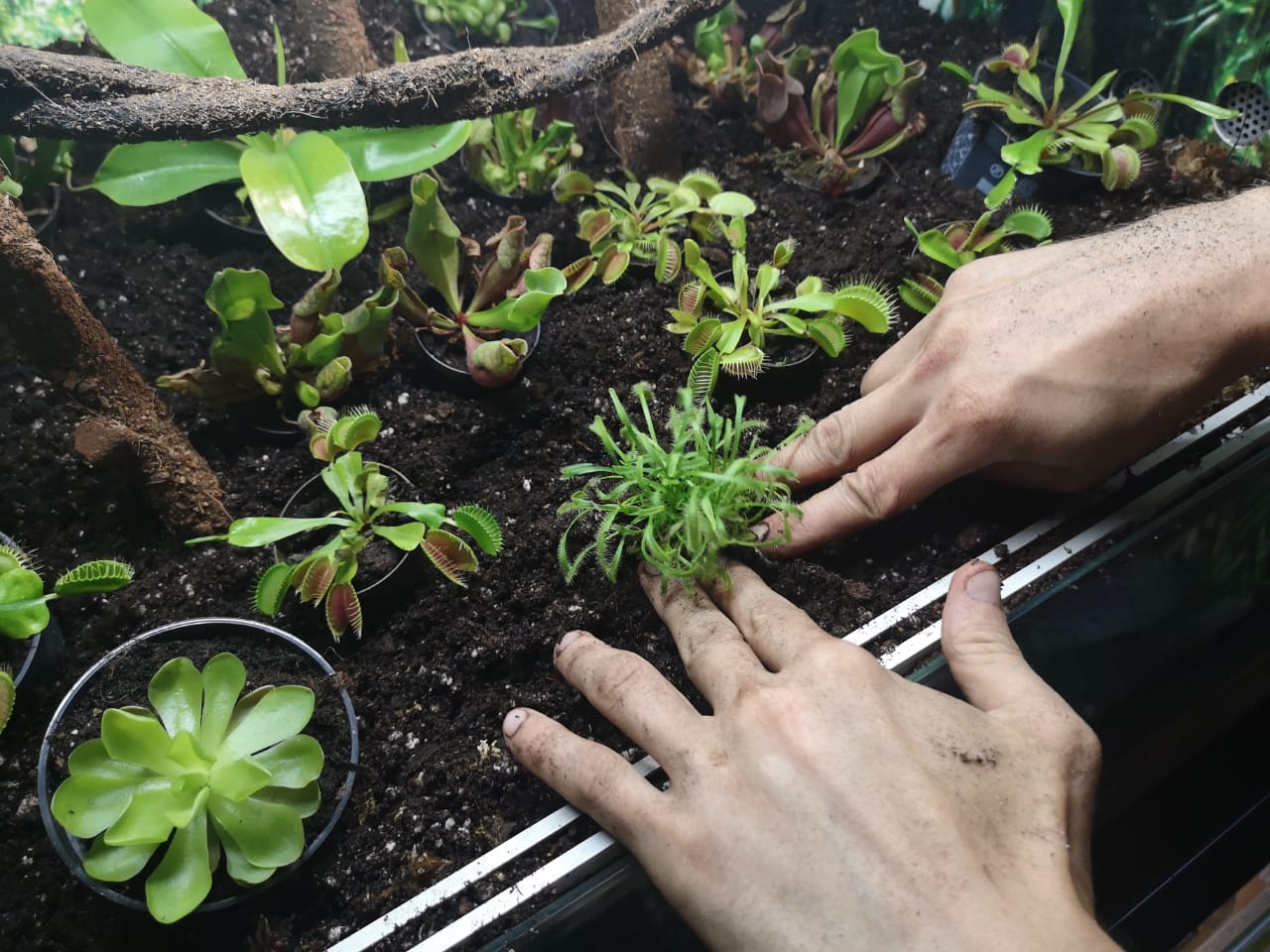Хотя выставка плотоядных растений вот-вот закончится, больше 30 из них не покинут стен нового здания Зкзотариума: популяризатор «растений с характером» Сергей Куницын высадил их во флорариуме и разъяснил сотрудникам, как правильно ухаживать за зелеными хищниками. На самом деле это не так сложно, как кажется на первый взгляд: каждому хищному растению в месяц необходимо для жизни поймать 3-4 насекомых среднего размера, а еще поддержание определенной влажности и полив дистиллированной водой.
