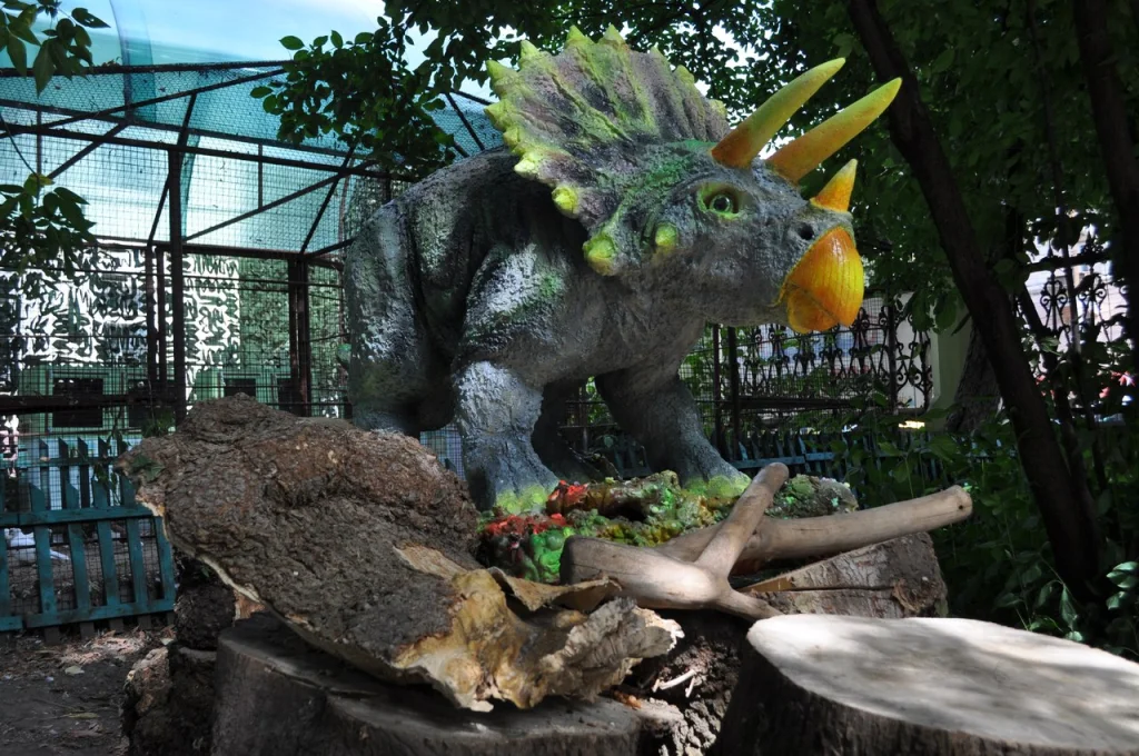 Его место обитания рядом с легендарной "тёщей" Тиной - в тульском экзотариуме. Юный трицератопс, сделанный из монтажной пены.