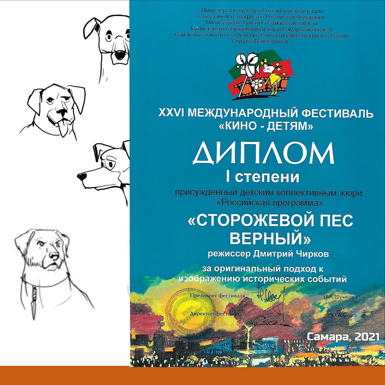 «Сторожевой пес Верный», мультфильм тульского режиссера Дмитрия Чиркова, за оригинальный подход к изображению исторических событий был награжден дипломом I степени на XXVI Международном фестивале «Кино — детям» в Самаре. Награду фильму присудило «детское коллективное жюри». Об этом создатель мультфильма Дмитрий Чирков сообщил на своей странице ВКонтакте, поздравив свою команду, с которой они и создавали проект: