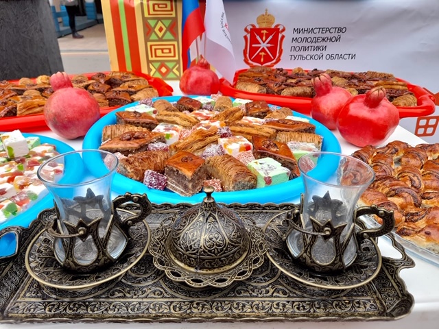 Тут же можно было поучаствовать в мастер-классах по приготовлению хинкали, по изготовлению таросиков, росписи мехэнди, монет и игрушек, посидеть в шатре на восточном ковре, примерить папаху и взять уроки игры на нагаре. Всех гостей угощали шах-пловом, долмой, русскими и восточными сладостями, а на сцене выступили творческие коллективы.