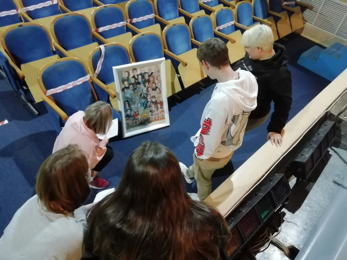 «Репетиция нового спектакля „Двенадцать месяцев“ сегодня началась с сюрприза. Наша зрительница Маргарита подарила театру на вот такую картину — коллективный портрет! Любуемся, радуемся и предлагаем вам тоже полюбоваться», — написали они в комментарии к фотографиям.