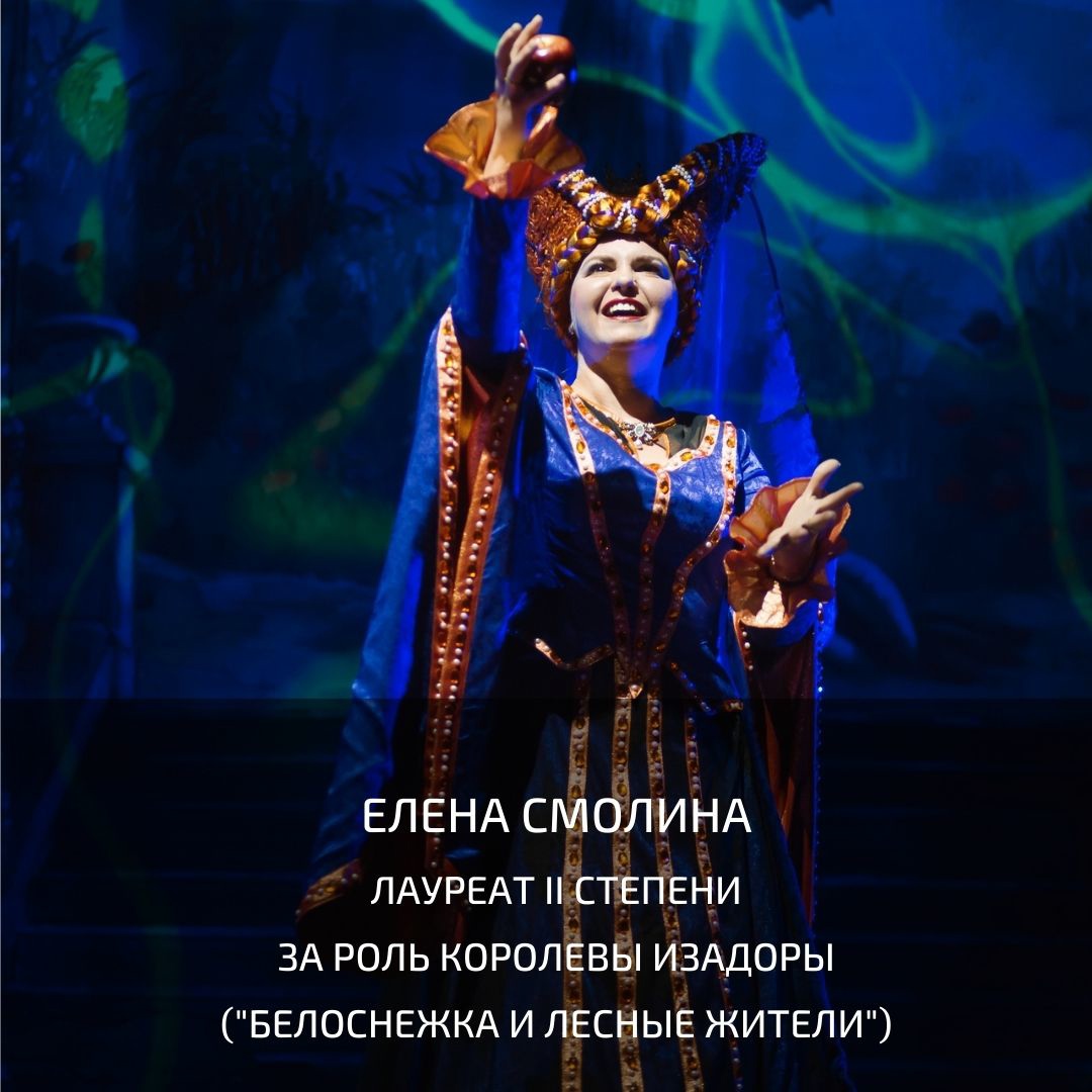 Так, за роль Королевы Изадоры в сказке «Белоснежка и лесные жители» диплом II степени получила актриса Елена Смолина. Добавим, что в марте 2021 года этот спектакль был отмечен федеральным порталом «Культура.рф» как одно из самых интересных театральных событий страны.