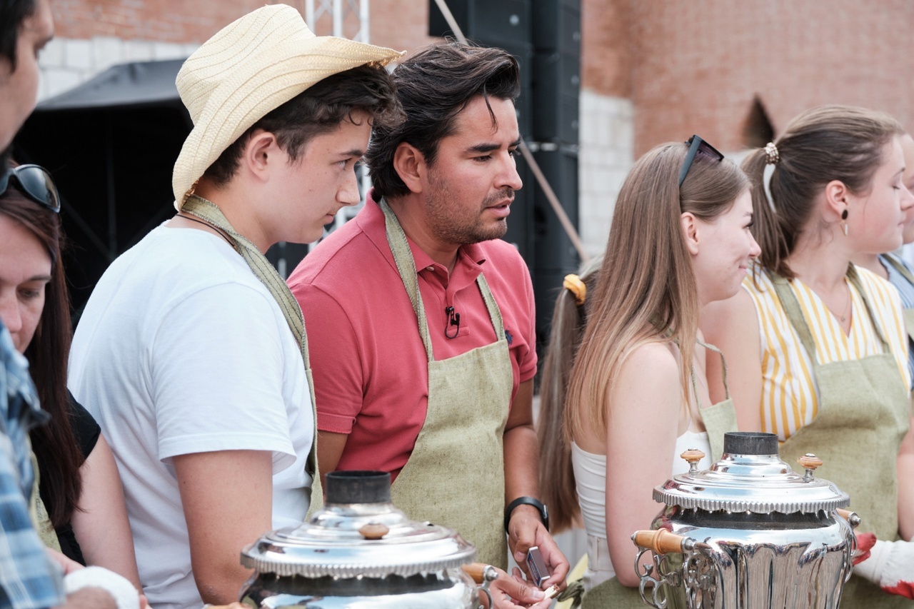 Продолжил знакомиться с Тулой мексиканец в ремесленном дворе «Добродей»: там его научили растапливать жаровой самовар и пить чай из блюдечка по традиции старого тульского купечества. Все это войдет в программу о Туле, которая выйдет в эфир RT в сентябре. Передача будет на русском и испанском языках.