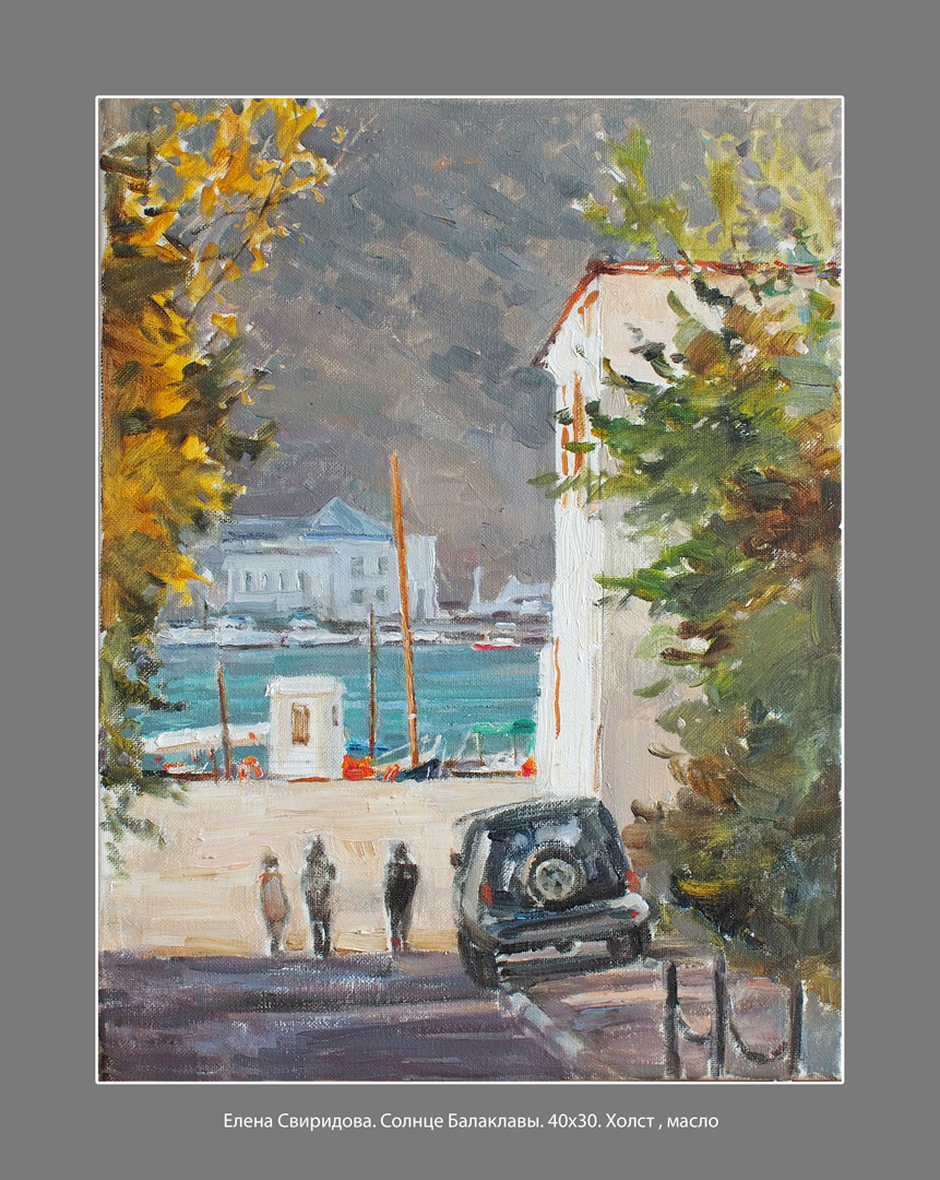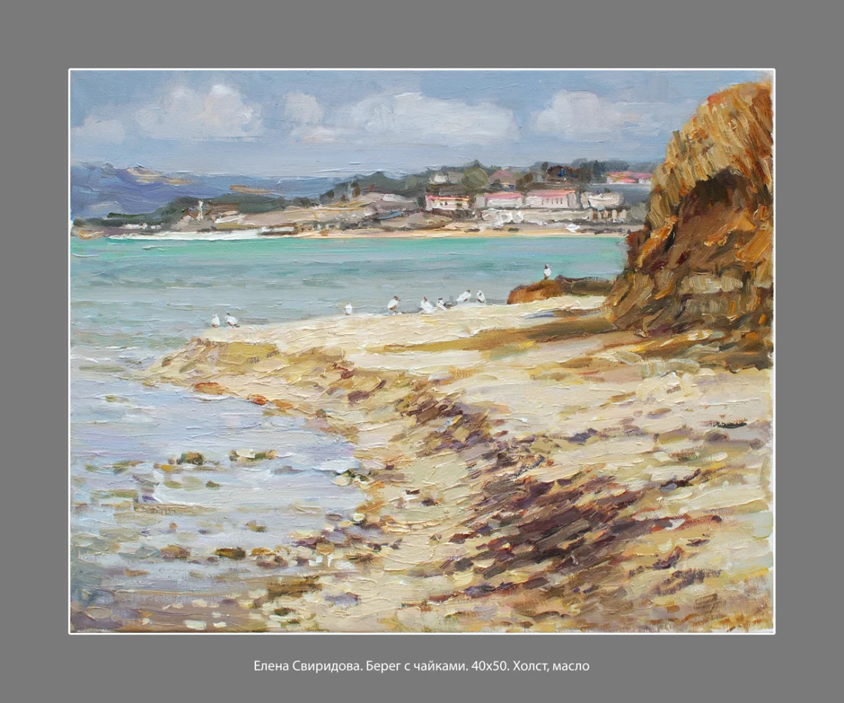 Экспозиция «У Чёрного моря» - это коллекция пейзажей с видами Крыма. Воспоминания о мире, в котором есть море. Автор передает все богатство полуострова с его прибрежными и горными пейзажими. Елена Свиридова изображает Крым курортный и походный, жаркий и заснеженный, приглашая зрителей в путешествие по своему любимому уголку России.