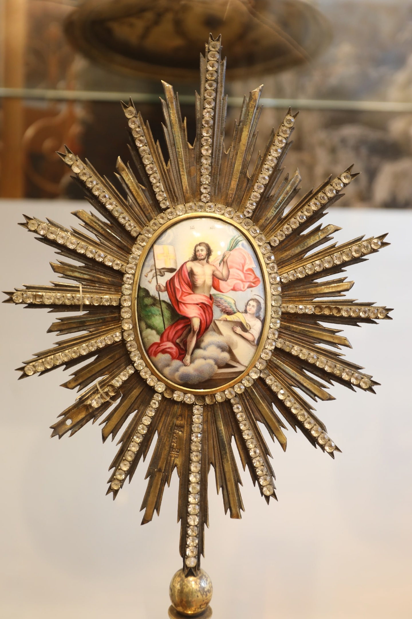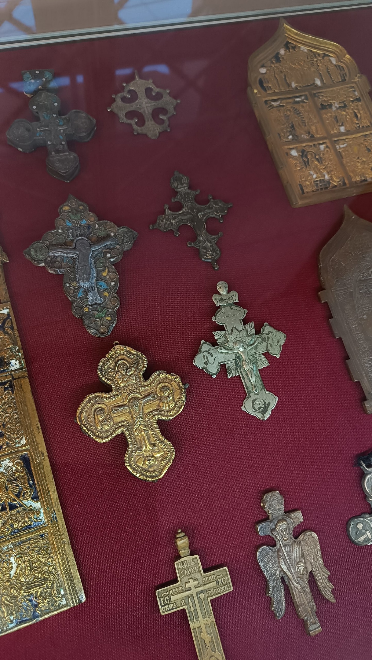 Экспозиция также включает широкий круг памятников, связанных с Православием в тульском крае, среди которых «Дарохранительница» 1839г, крест-мощевик XVIII века и другие предметы. На выставке представлены и иконы, как более старинные, так и конца XIX века.