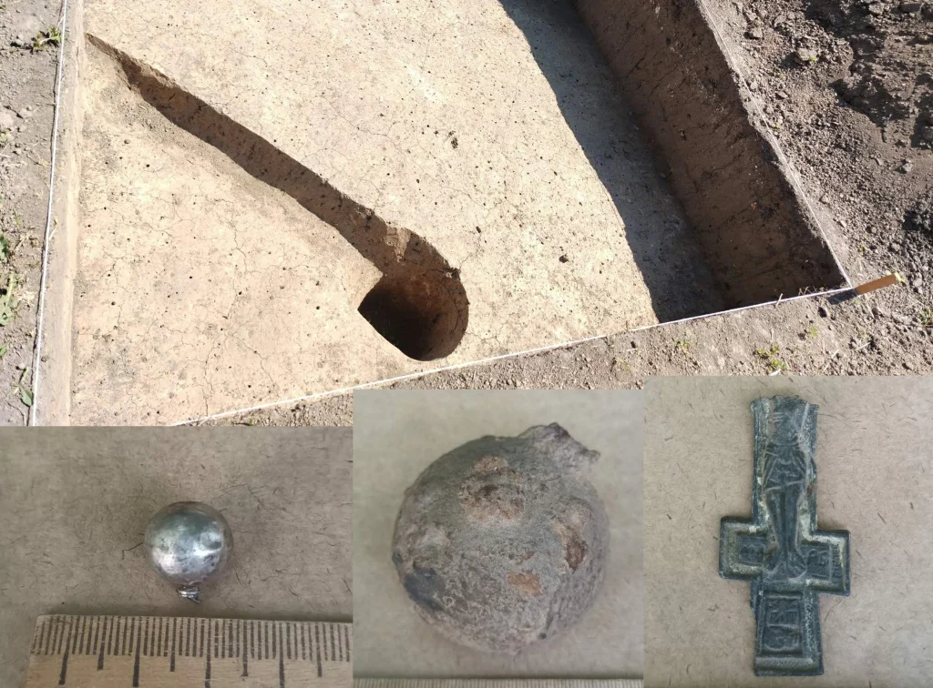 Найденный старообрядческий наперсный крест датируется XVIII веком, а фрагмент голландской курительной трубки