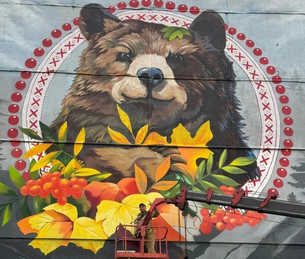 В Веневе Тульской области мастер граффити Алексей Баженов завершил работу над последним муралом творческого проекта «Рябиновая Русь».