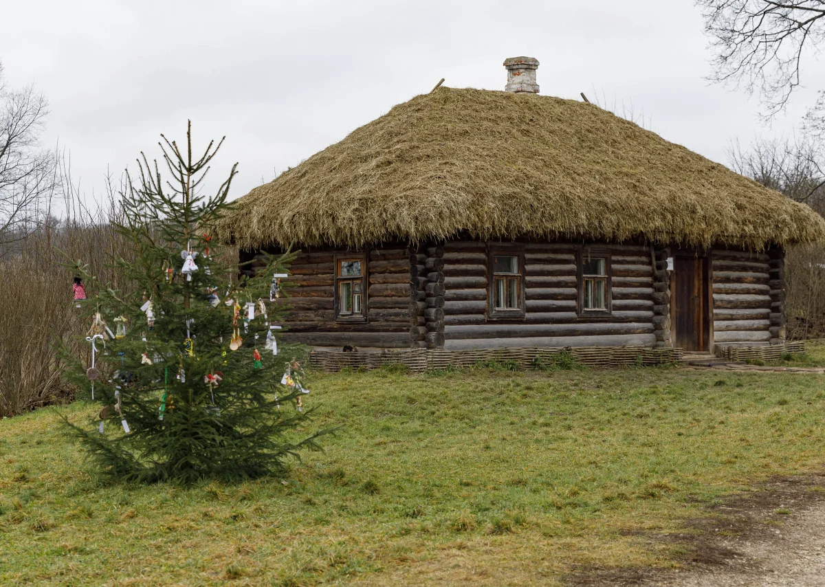Новогоднее дерево у Кучерской избы украсили авторскими игрушками, созданными детьми-победителями.