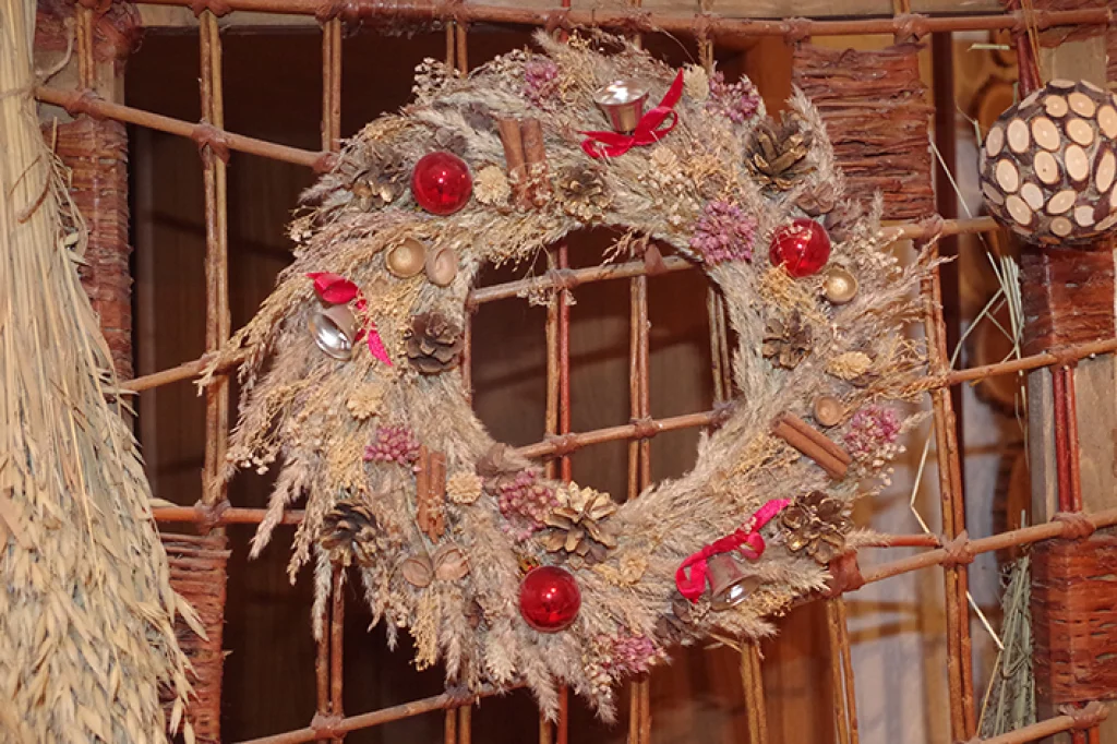Посетители увидят флористические картины с зимними пейзажами, рождественские венки,  композиции из природных