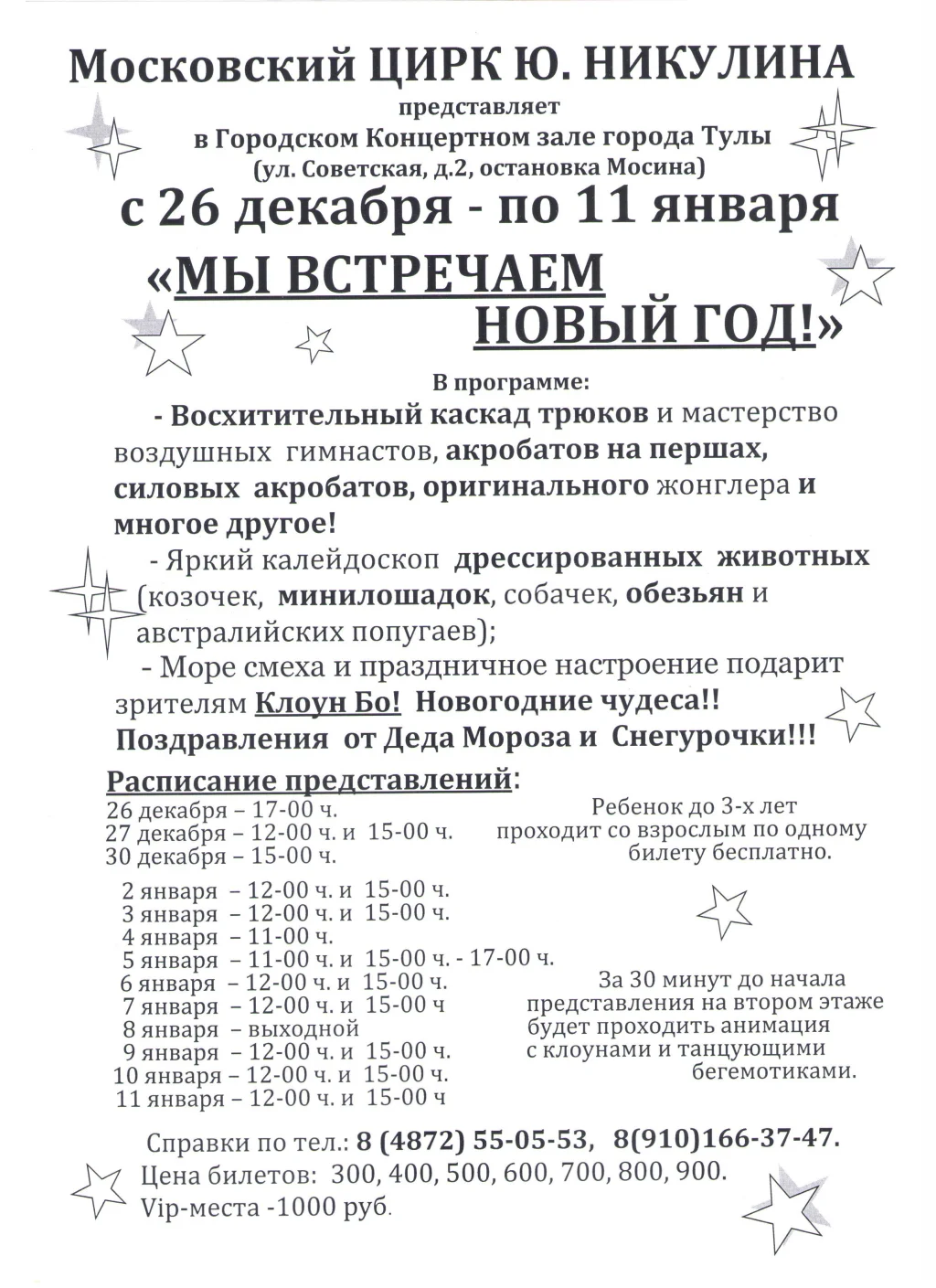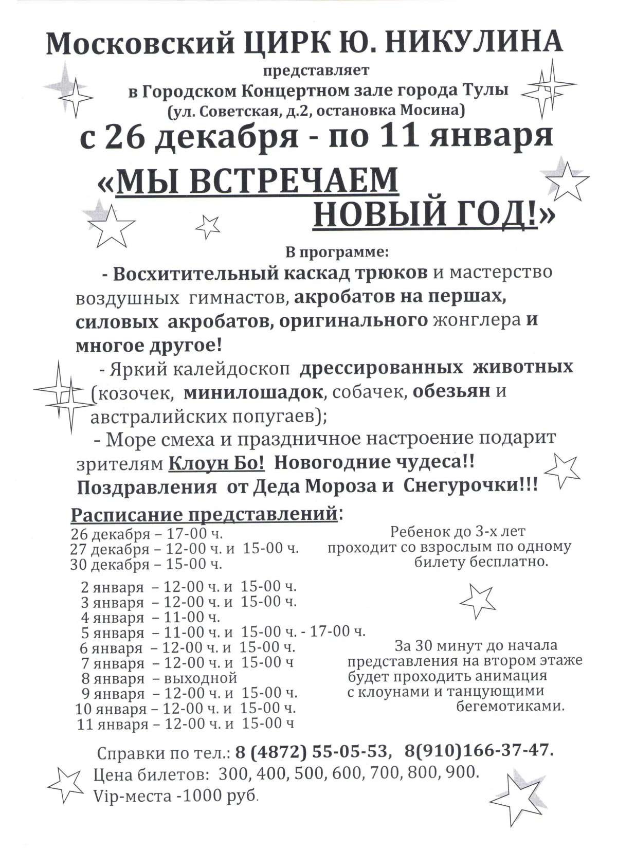 Московский цирк Никулина покажет в Туле в январе 18 представлений