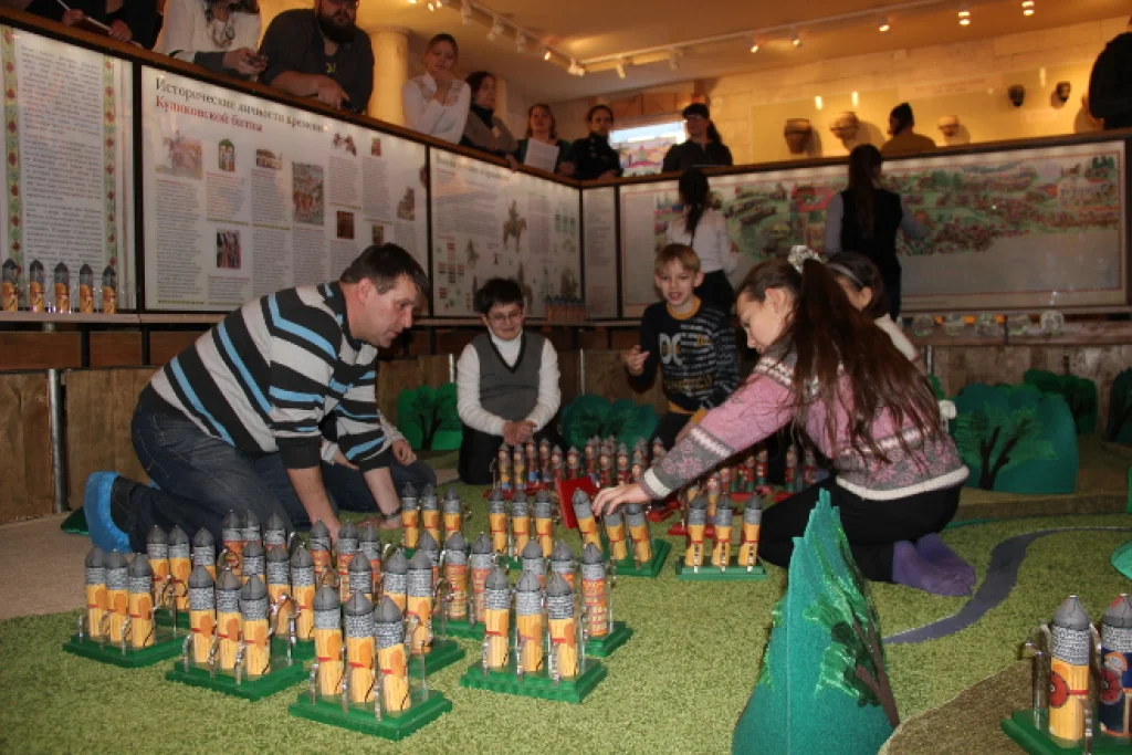 Теперь знакомиться с историей можно играя. На зеленом ковре, имитирующем холмы Куликова поля выстроены русские полки и татарские воины. Посетители вместе с экскурсоводом руководя игрушечной армией узнают о событиях произошедших более 6 столетий назад. Ребятня вместе с экскурсоводами выстраивает армии и узнает как действовали воины под руководством Дмитрия Донского и ордынцы под командованием Мамая.