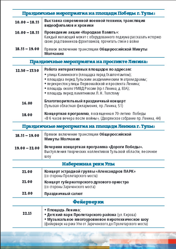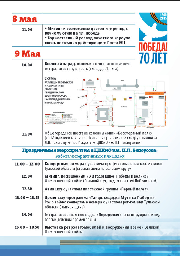 Для туляков и гостей города приготовлена большая и интересная программа празднования на 8 и 9 мая