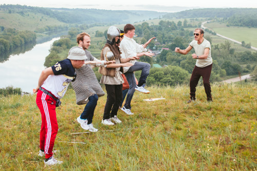 Также в первый съемочный день киношники работали в деревне Шилово, где снимали эпизод с пьяным загулом героев. Петя со своей новой подругой Алиной отправился на ее джипе за город. Вместе с ним поехали его близкие – отец Геннадий в исполнении Михаила Боярского и друг Валя, герой Сергея Лавыгина, известного по сериалу «Кухня». Там-то и начинаются безумства под песню группы «Серебро» «Мама Люба, давай!» в исполнении Серябкиной, Боярского и Лавыгина. Герои комедии встречают «толкинистов»*, решивших, по замыслу сценариста, также устроить пикник. Петя, Геннадий и Валя отобрали у них мечи, щиты и копья, а герой Михаила Боярского начал учить молодежь делать зарядку и заставил «толкинистов» отжиматься.