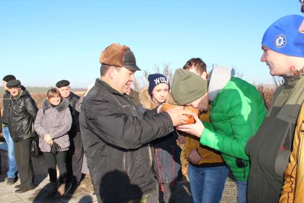 . Призывники испили из общей братины святой воды Куликова поля, преломили хлеб-соль и повязали ленточки на молодое деревце, которое будет высажено в Зеленой Дубраве. Завершилась встреча общей трапезой на полевой кухне.