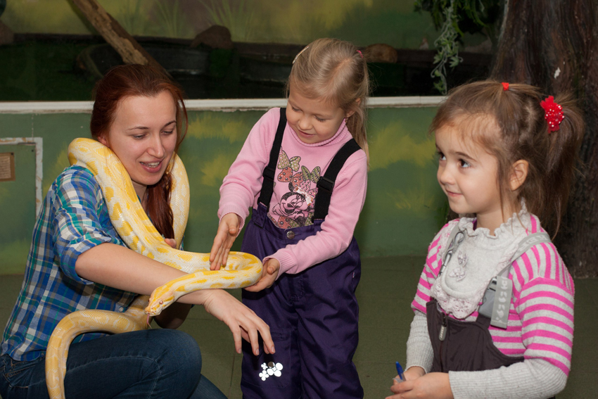 Очень душевная атмосфера этого милого дня настраивает на лирический лад и приносит спокойствие, что так важно мамочкам, а также детям и папочкам! Пообщаться с огромным нарядным тигровым и погладить само-спокойствие-королевского-питона, скажем честно, отважились не все мамы! Зато какими восхищенными глазами они смотрели на своих деток, которые с любопытством изучали холоднокровных жителей экзотариума! Одним из подарков стала фотосессия со змеями от профессионального фотографа.