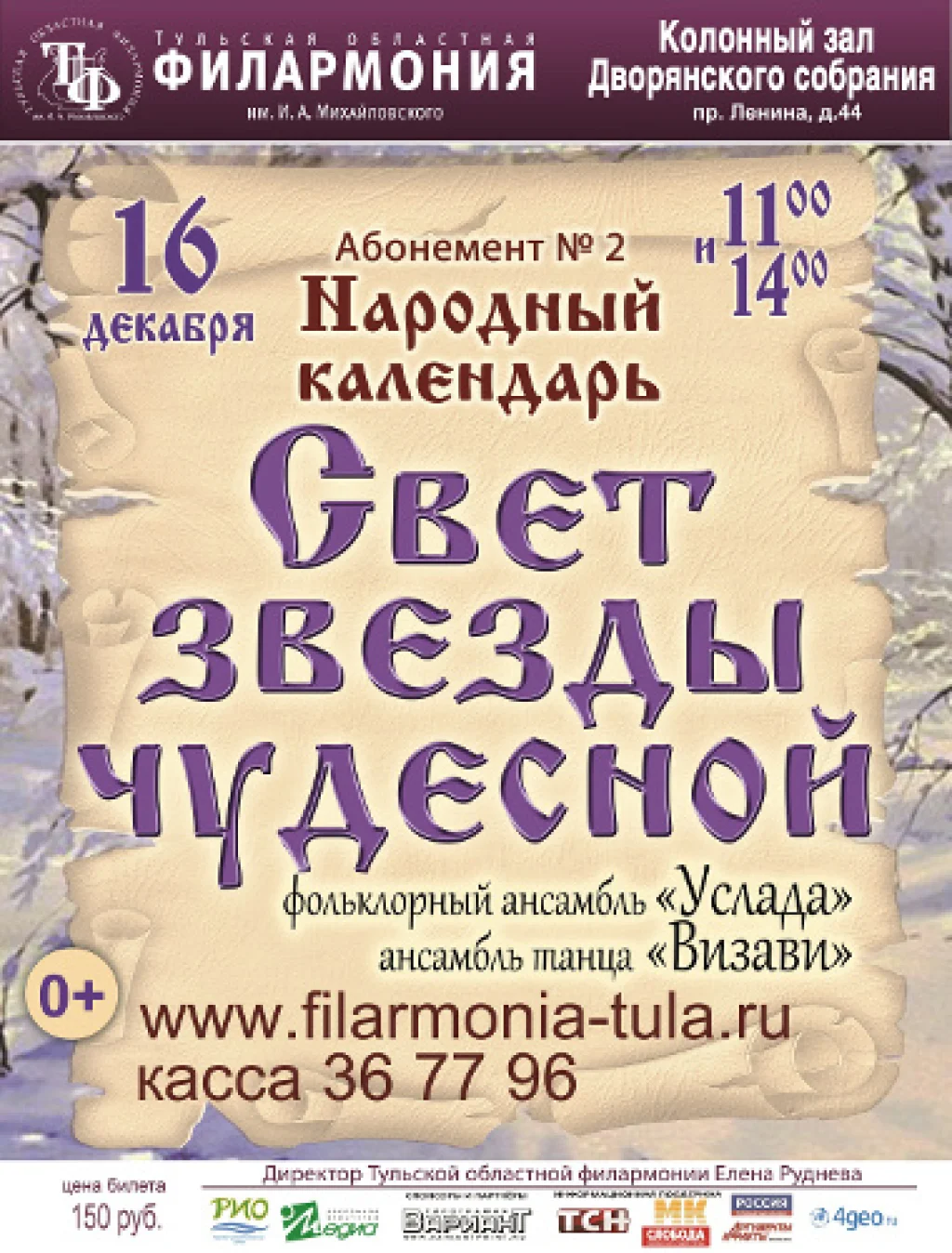 Колонный зал Дома Дворянского собрания тульской областной филармонии приглашает на рождественскую сказку для детей и взрослых «Зимние праздники «Свет звезды чудесной»