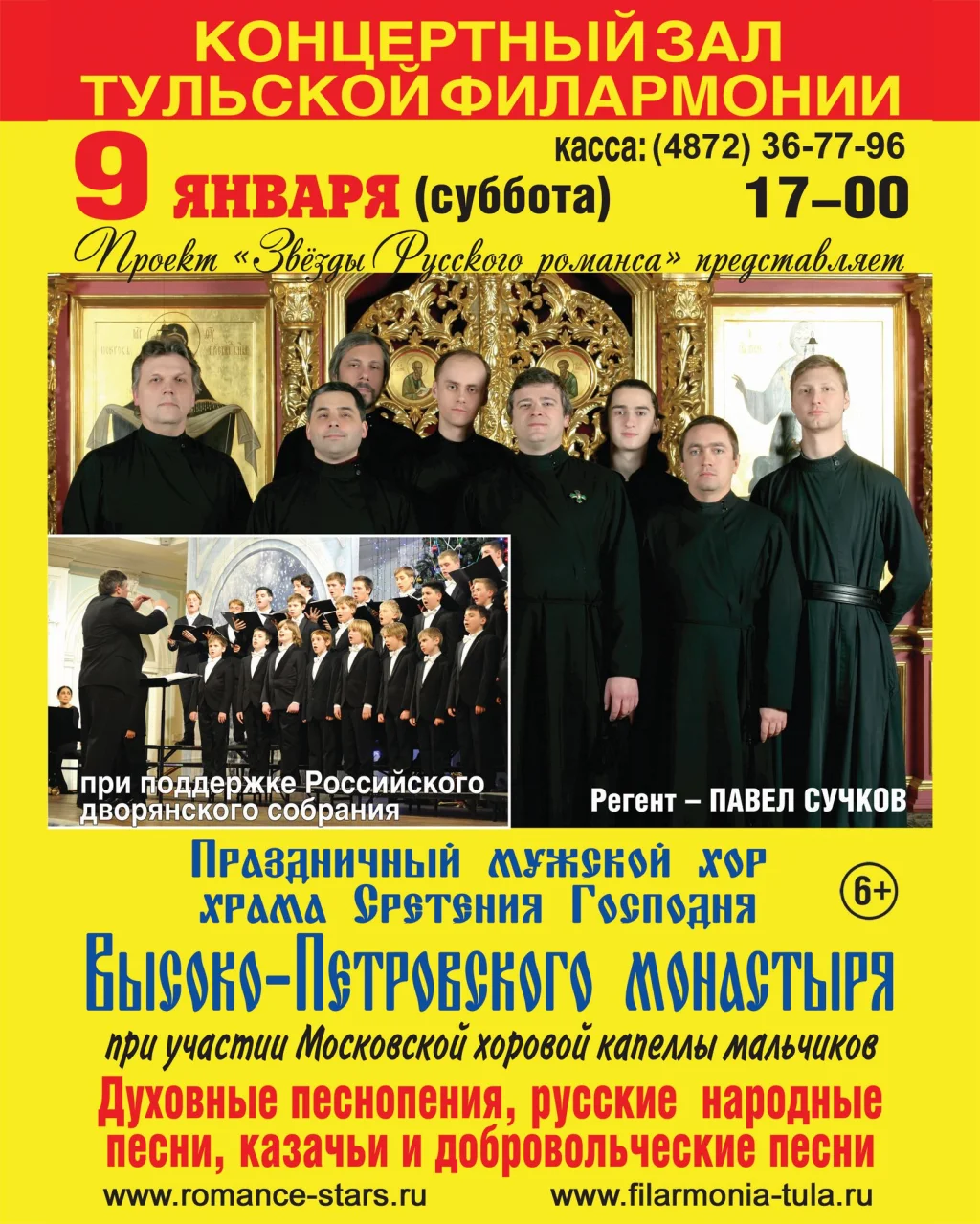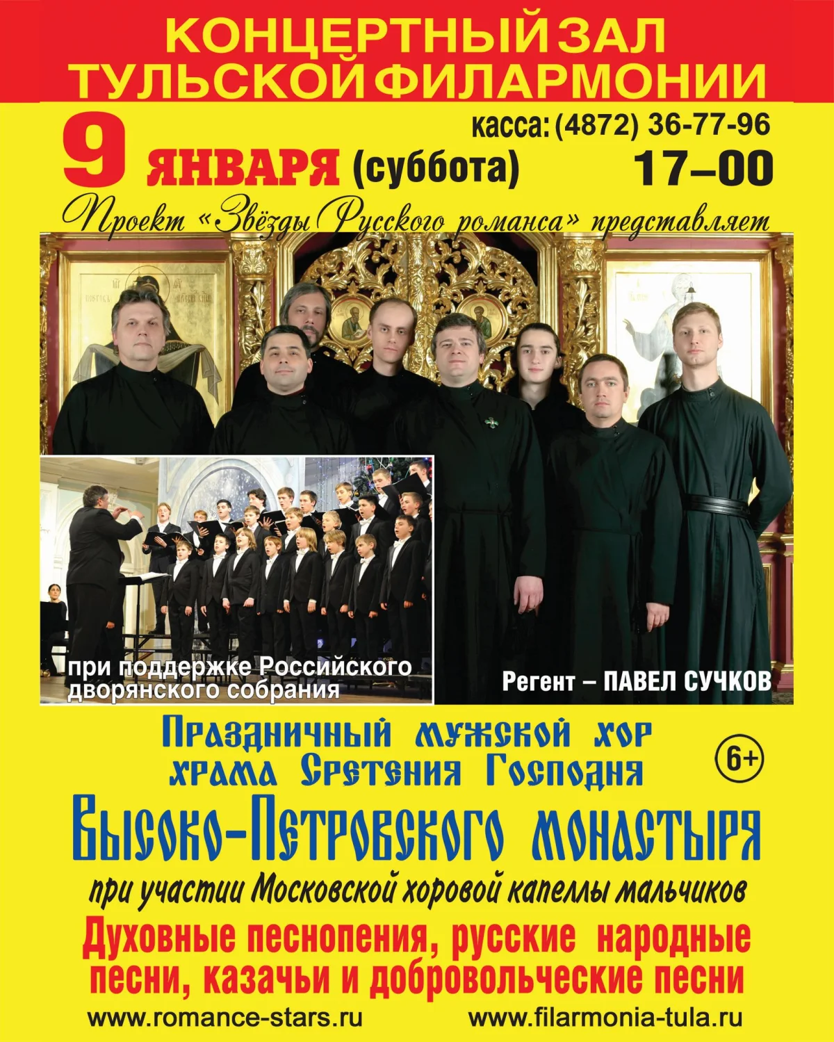 9 января 2016 г. в 17:00 В КОНЦЕРТНОМ ЗАЛЕ ТУЛЬСКОЙ ОБЛАСТНОЙ ФИЛАРМОНИИ выступит мужской хор храма Сретения Господня Высоко-Петровского монастыря при участии Московской хоровой капеллы мальчиков.