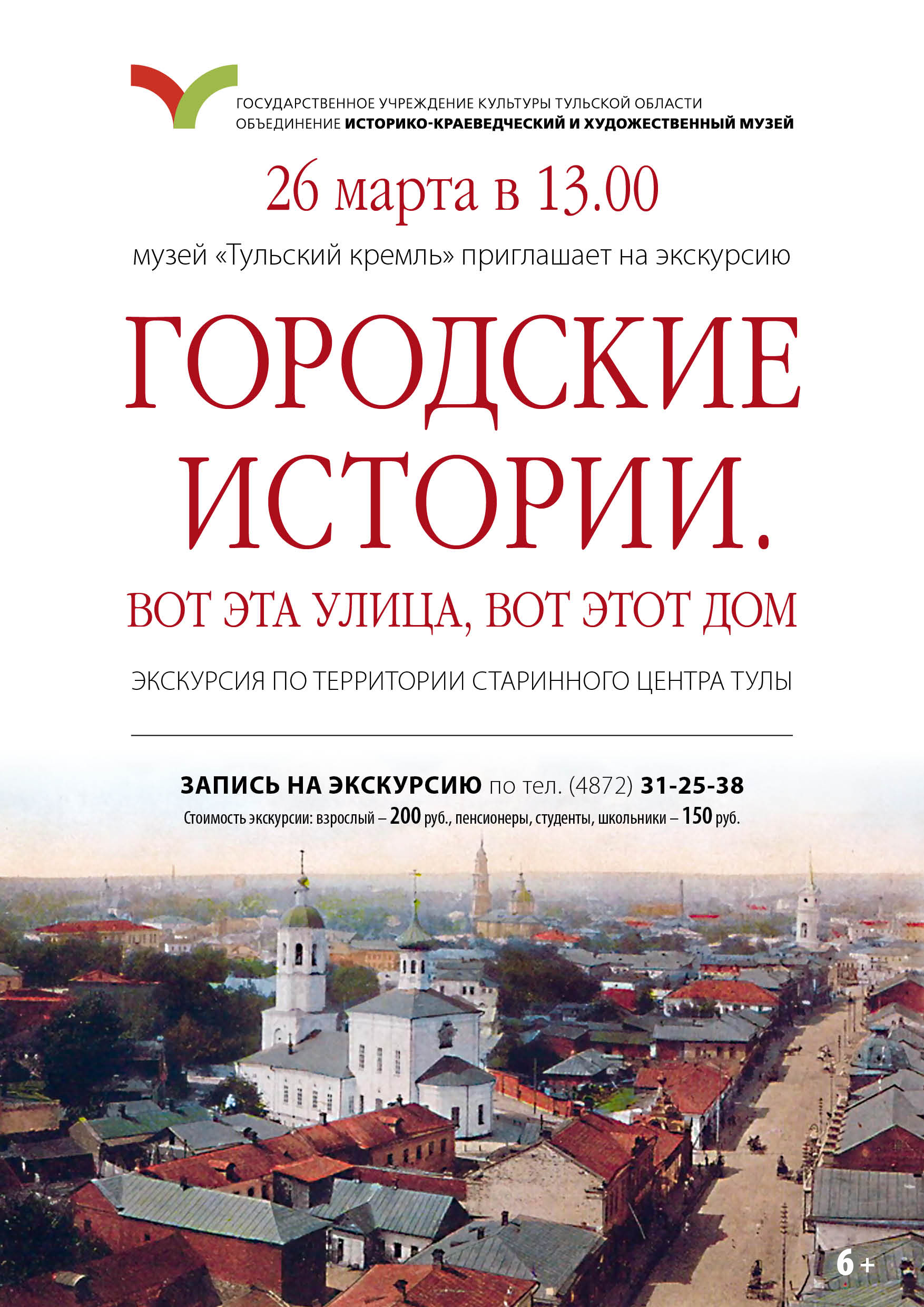 Экскурсия пройдет по историческому центру Тулы, в непосредственной близости от кремля. Вы познакомитесь с архитектурными постройками тульского посада, большинство из которых датируется XIX веком. Экскурсионный маршрут охватит площадь Ленина, Крестовоздвиженскую улицу, Денисовский переулок, Благовещенскую улицу, улицу Металлистов, улицу Советскую.