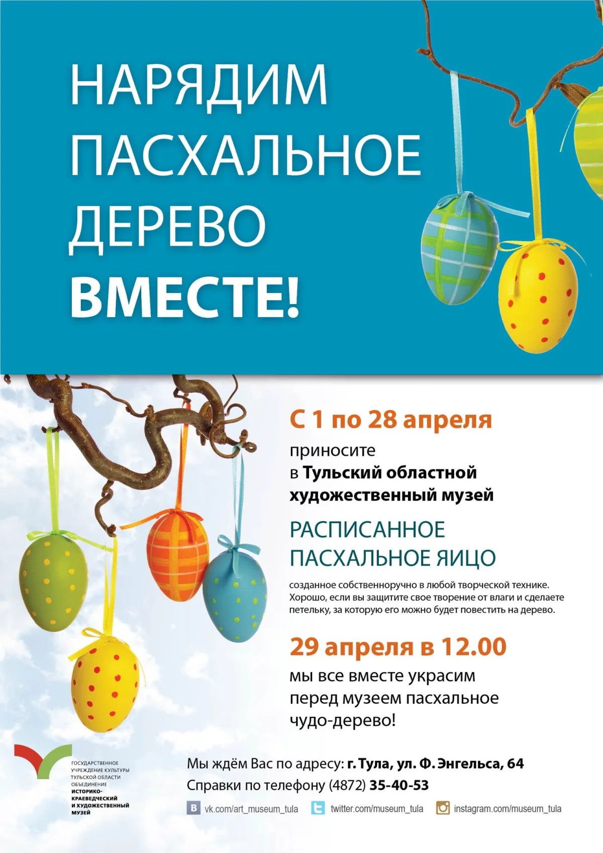 С 1 по 28 апреля 2016 г. ТУЛЬСКИЙ ОБЛАСТНОЙ ХУДОЖЕСТВЕННЫЙ МУЗЕЙ приглашает принять участие в акции «Нарядим Пасхальное дерево вместе!»