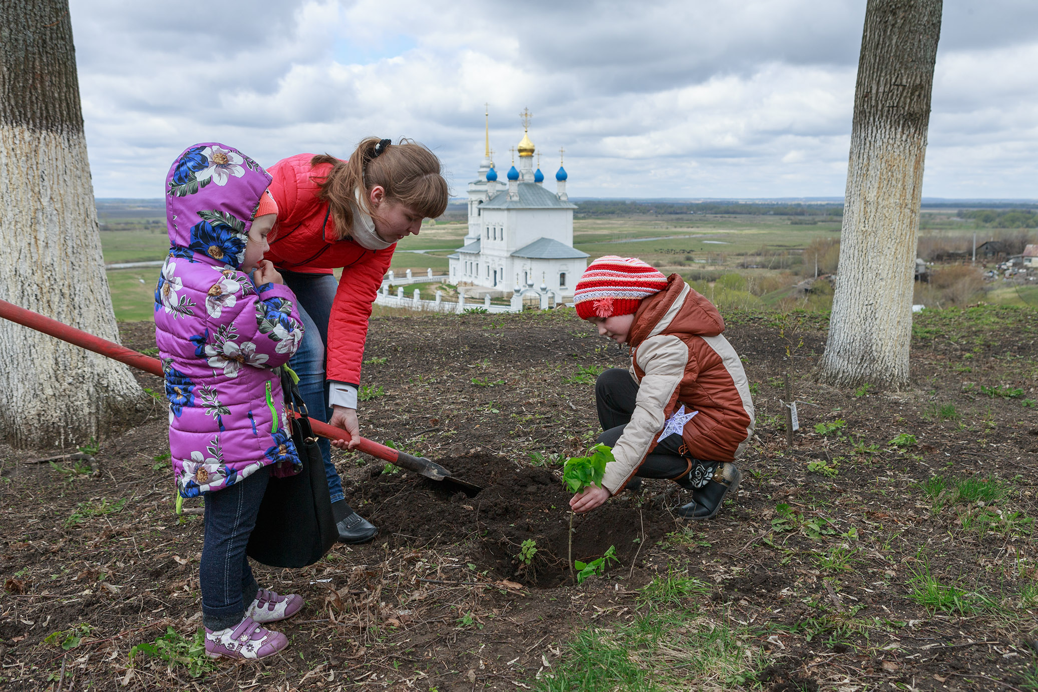 с набухшими почками, местные старожилы все лето поливали их и берегли. Для новой акции Игорь Подковыров привез