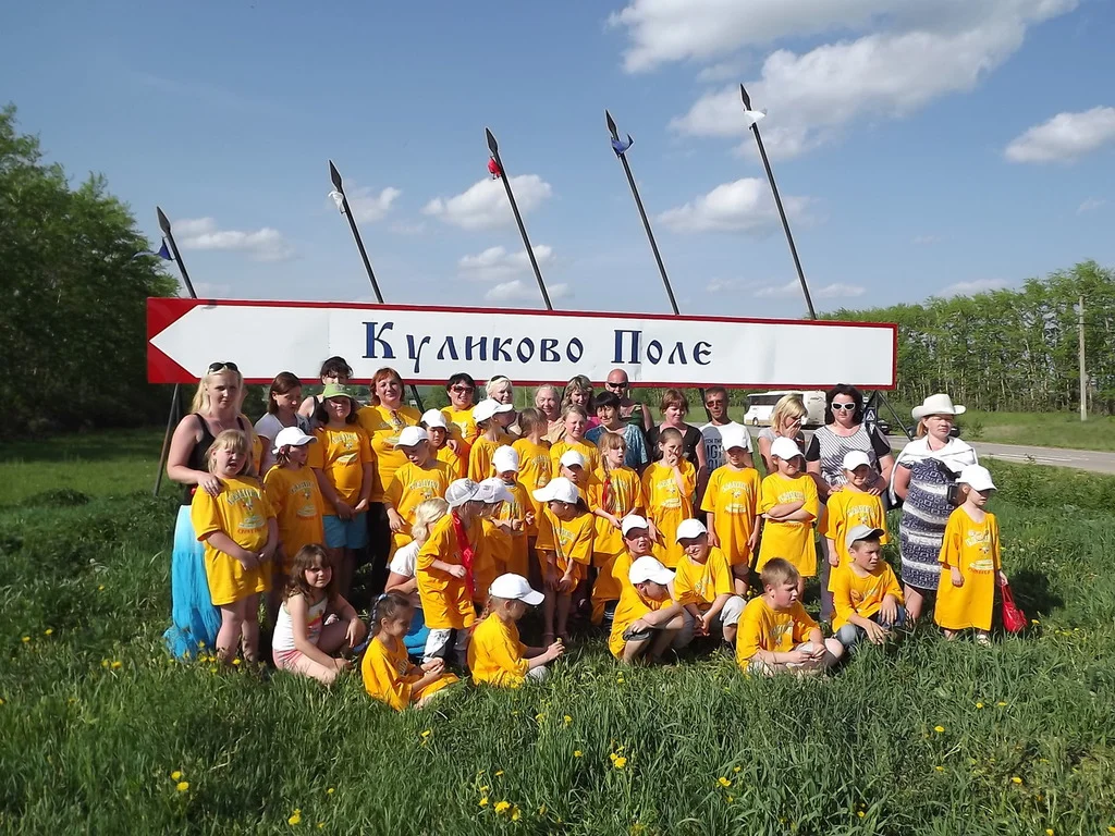 Под занавес праздника участники нарядились в одинаковые майки в тон распустившейся сирени и выстроились в простое слово «ПОЛЕ». Былина на поле – Первом ратном поле России!