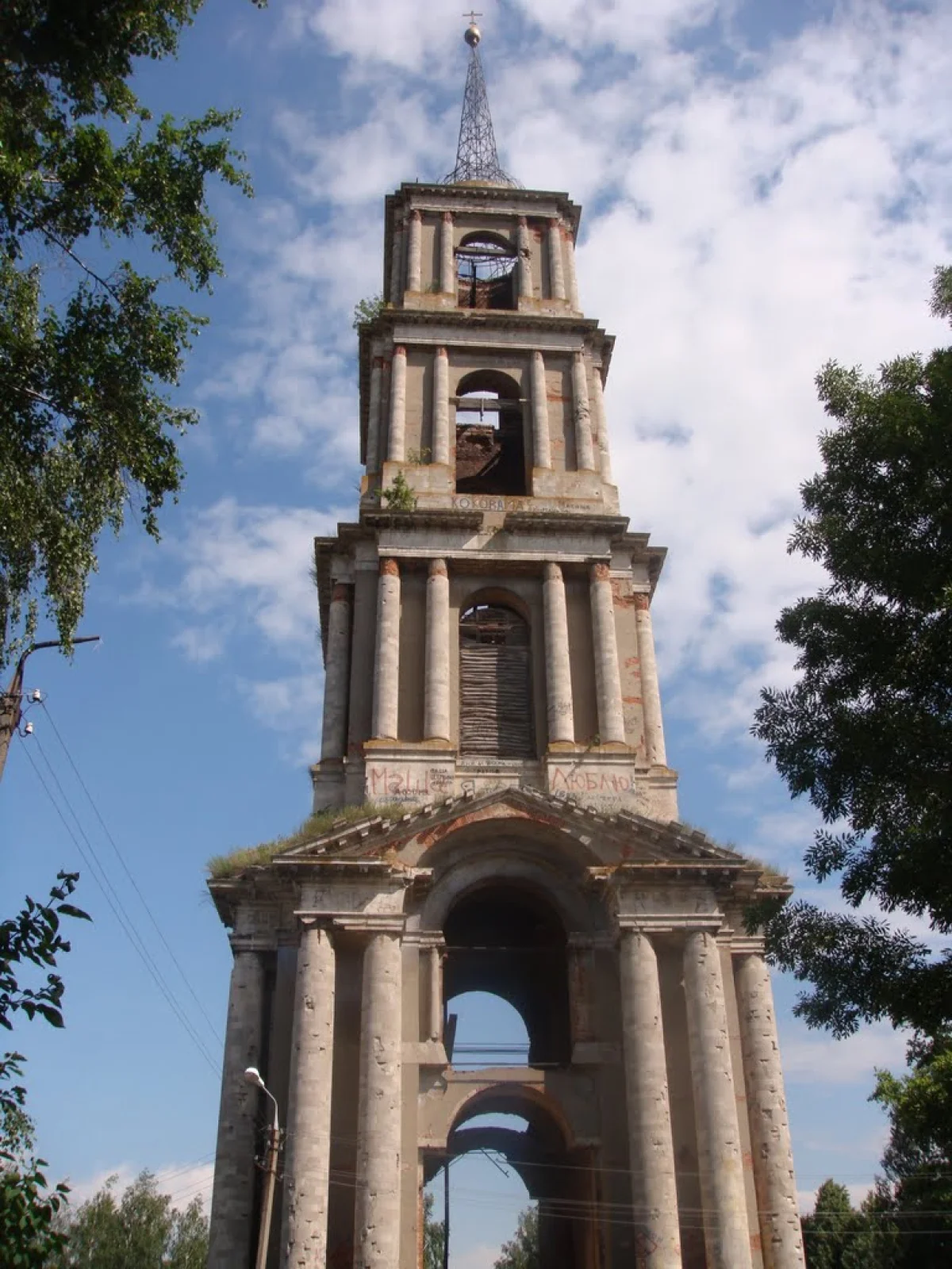 Колокольня Никольского храма является выдающимся памятником архитектуры девятнадцатого века. Строиться она начала в 1800 году под руководством Козьмы Семеновича Сокольникова, продолжалась стройка около пятидесяти лет. Вначале тридцатых годов, с закрытием приходов, церковь подверглась разграблению, во время Великой отечественной Войны колокольня сильно пострадала, подверглась обстрелу. Здание церкви было разобрано в сороковых годах. Колокольню же «спасли» окружающие дома, подрыв колокольни отменили, так как он мог сильно повредить окружающие дома.