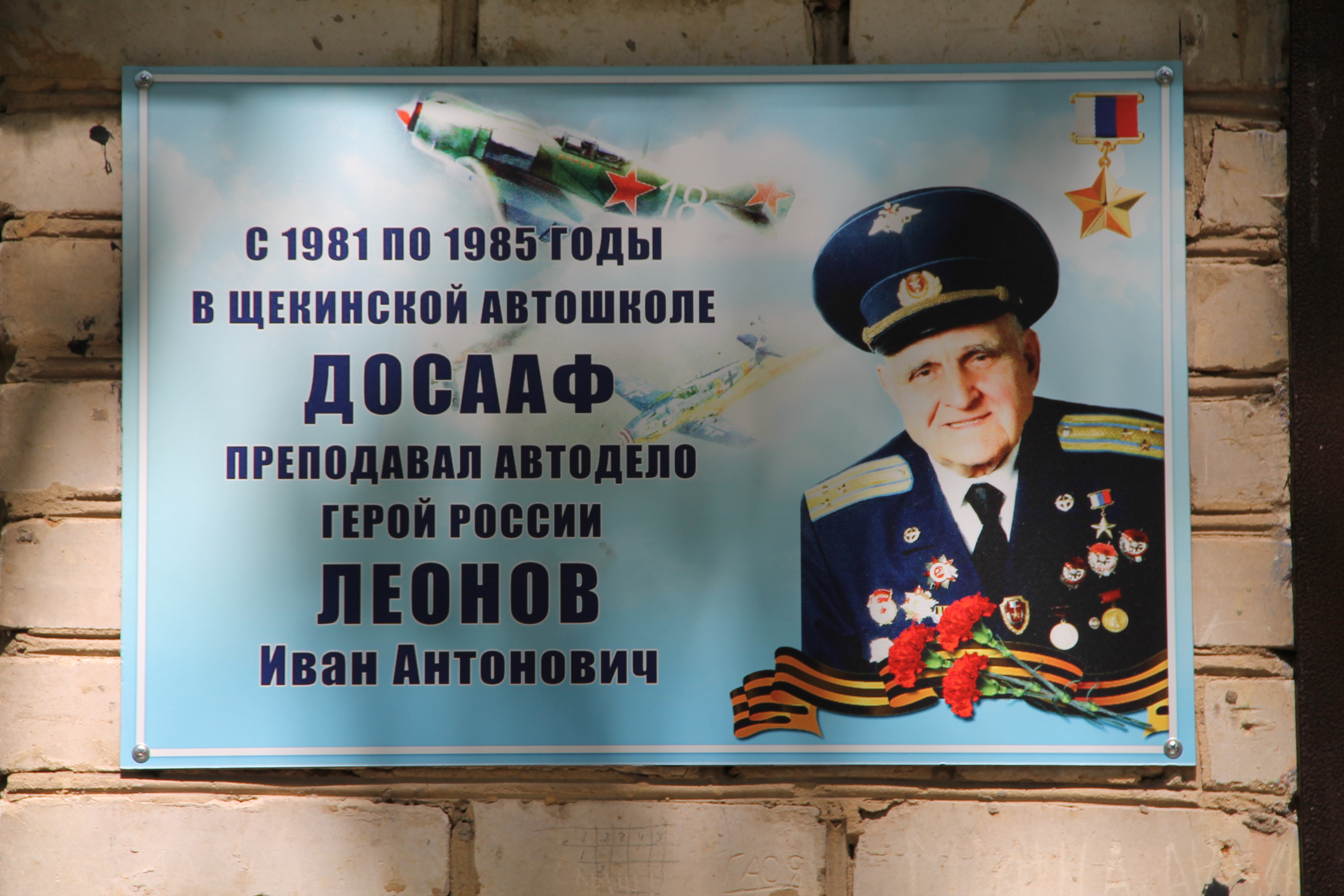 В Щекино состоялось торжественное открытие памятной доски ветерану Великой Отечественной войны, Герою России, летчику Ивану Антоновичу Леонову, жизнь которого неразрывно связана с Щекинским районом. Сам Герой посетил это торжественное мероприятие.