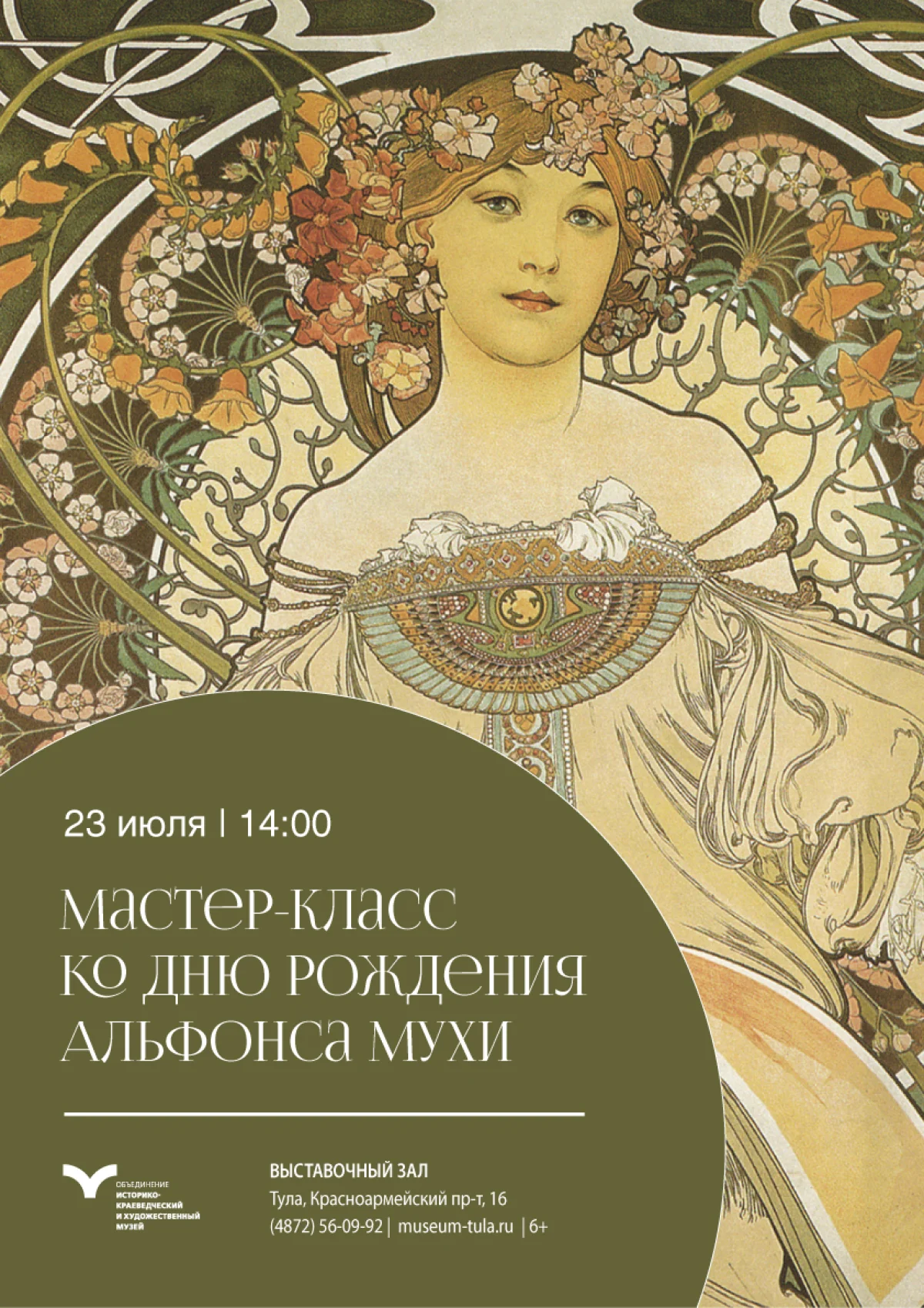 В Выставочном зале на Красноармейском проспекте города Тулы пройдет мастер-класс ко дню рождения Альфонса Мухи. На конец XIX – начало XX веков приходится расцвет стиля модерн или стиля ар-нуво. Творцы, работающие в этом направлении, ушли от резких углов и прямых линий к более плавным линиям. Мероприятие пройдет 23 июля в в 14:00. Ограничение по возрасту - 6+. Записаться можно по телефону: 56-09-92. Цена билета - 60 рублей.