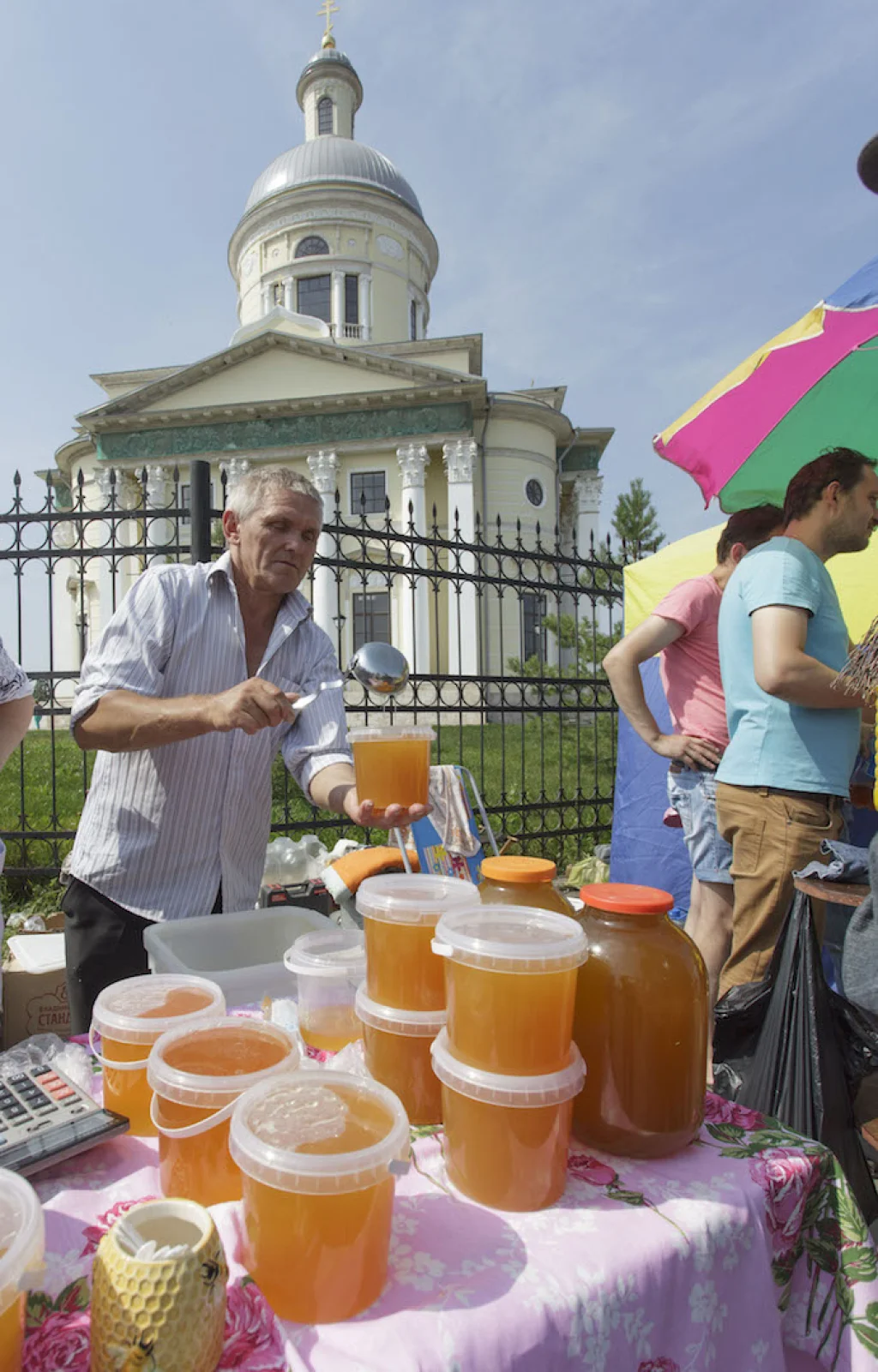 Ну и конечно, на ярмарке представлен мед нового урожая с тульских пасек и хозяйств соседних регионов. Для консерваторов – липовый, цветочный и гречишный мед. Для тех, кто открыт для экспериментов, – подсолнечниковый мед, кориандровый, из черноклена, расторопши. В банках и в сотах. А еще – прополис и самодельные восковые свечи.