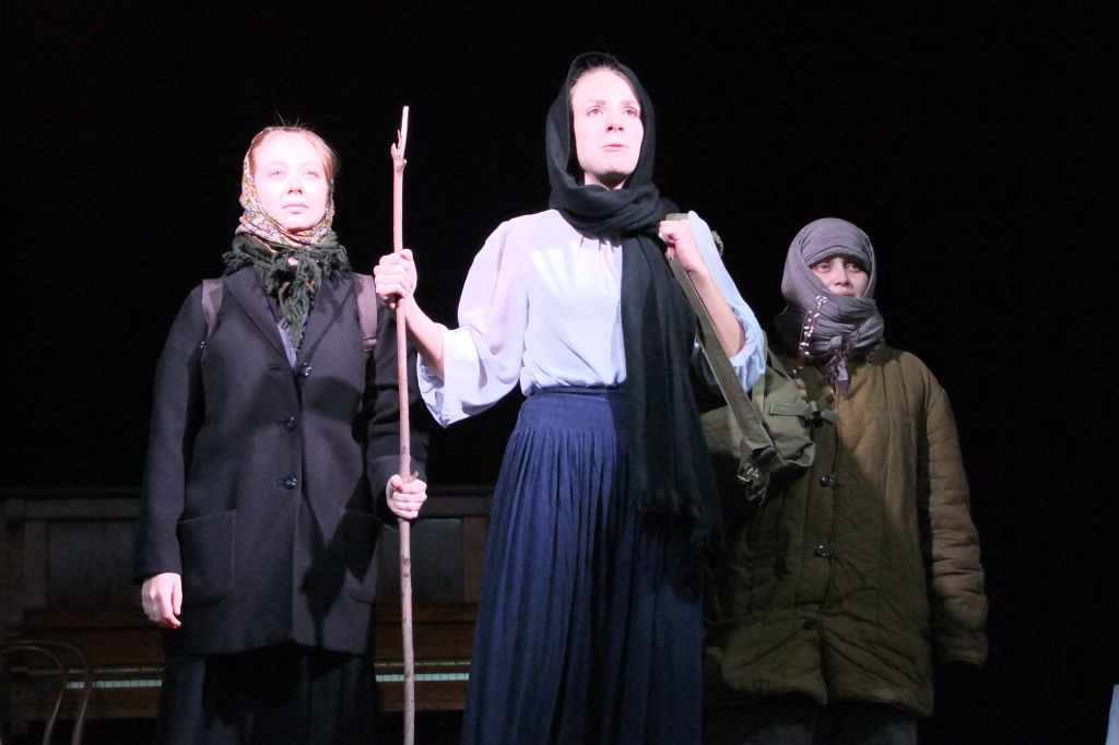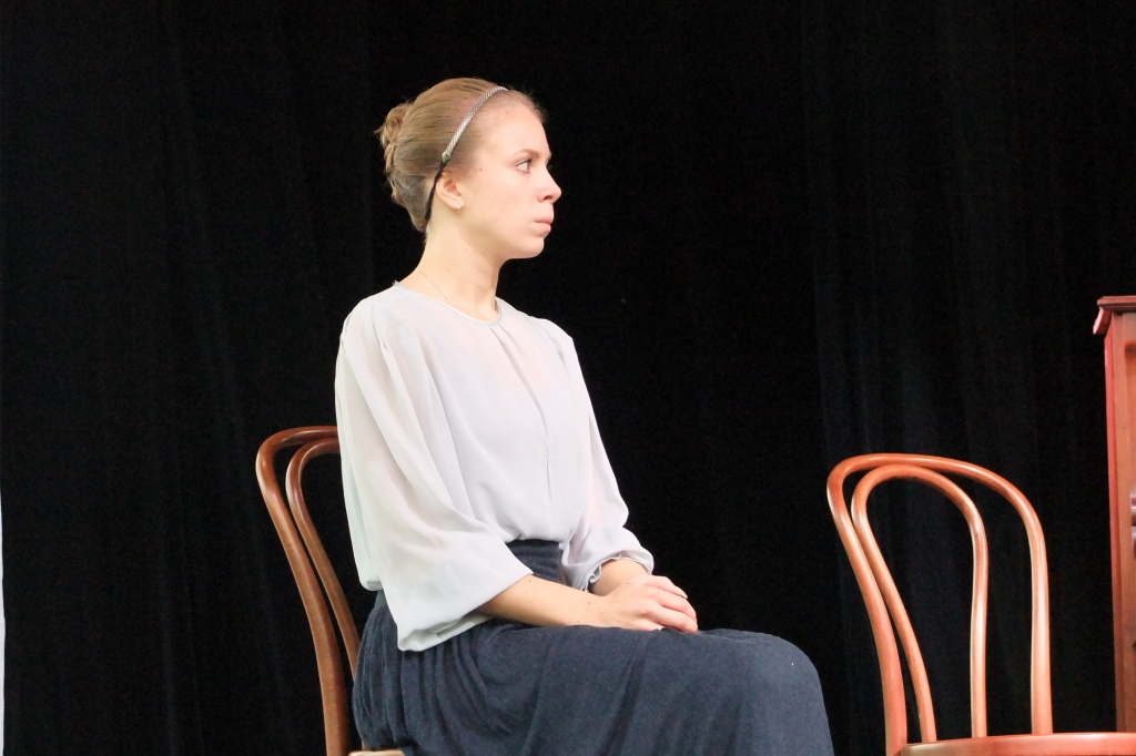 Когда Марья появилась на сцене, сразу стало понятно – это она. «Зеркало отразило некрасивое слабое тело и худое лицо. Глаза княжны, большие, глубокие и лучистые (как будто лучи теплого света иногда снопами выходили из них), были так хороши, что очень часто, несмотря на некрасивость всего лица, глаза эти делались привлекательнее красоты» - так описывает Лев Николаевич княжну Мари Болконскую. И, словно подчеркивая эти слова, накрашены у актрисы Юлианы Сополёвой только глаза. Лицо пудрой превращено в бледное и лишенное выразительных черт. А так как на улице в этот день было довольно прохладно, носик ее трогательно порозовел. Актеры ведь, в отличие от зрителей, не могли взять уютный красный плед с надписью «Tolstoy Weekend» и тем самым согреться. Описание обстановки, пространства, эмоций легло именно на Марью. Так, вначале спектакля она очерчивает воздух, рассказывая, что где стоит, что она видит и как к этому относится.