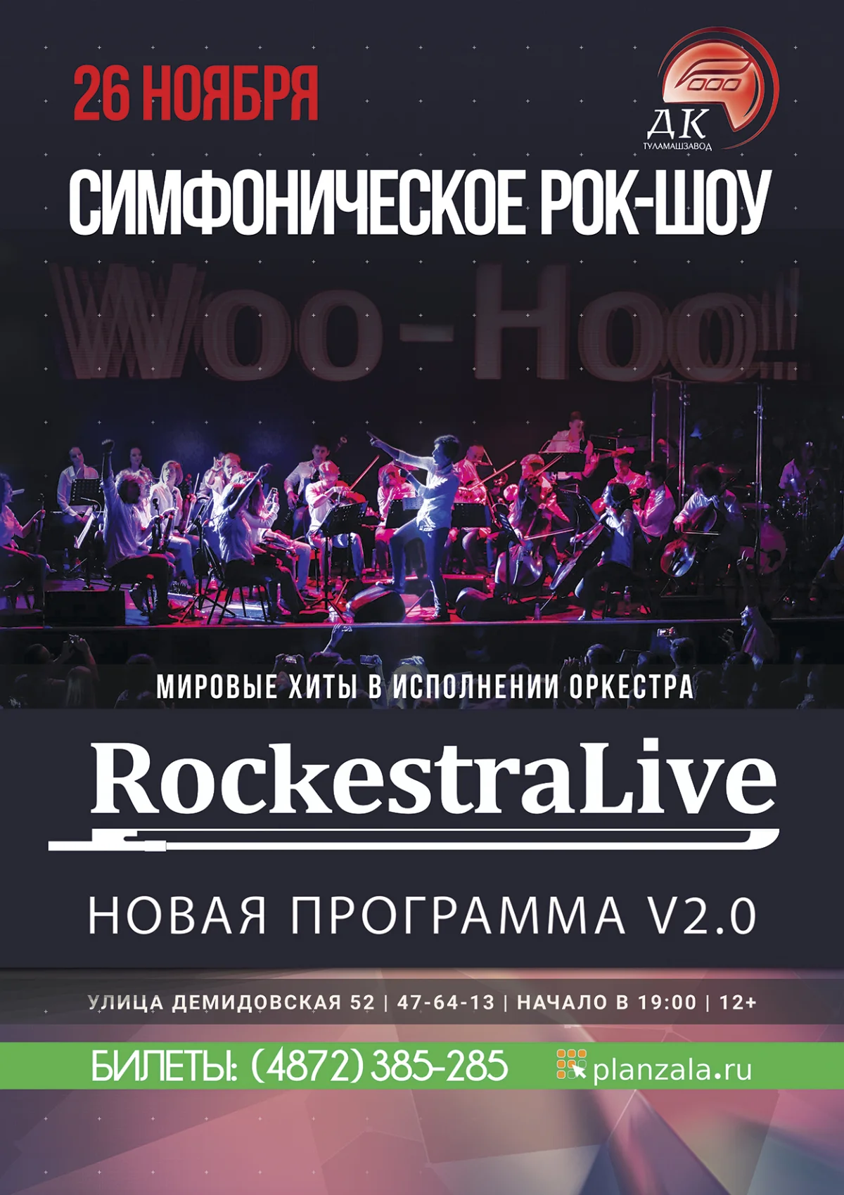 Шоу уже с успехом прозвучало во многих городах нашей Родины, недавно оркестр вернулся из масштабного тура по России. В Туле RockestraLive не впервые, но на этот раз рок-оркестр приготовил новую программу «v2.0». Вас ждет много сюрпризов и море положительных эмоций.