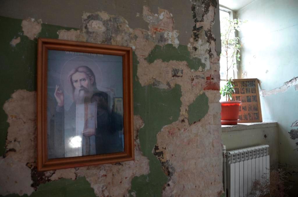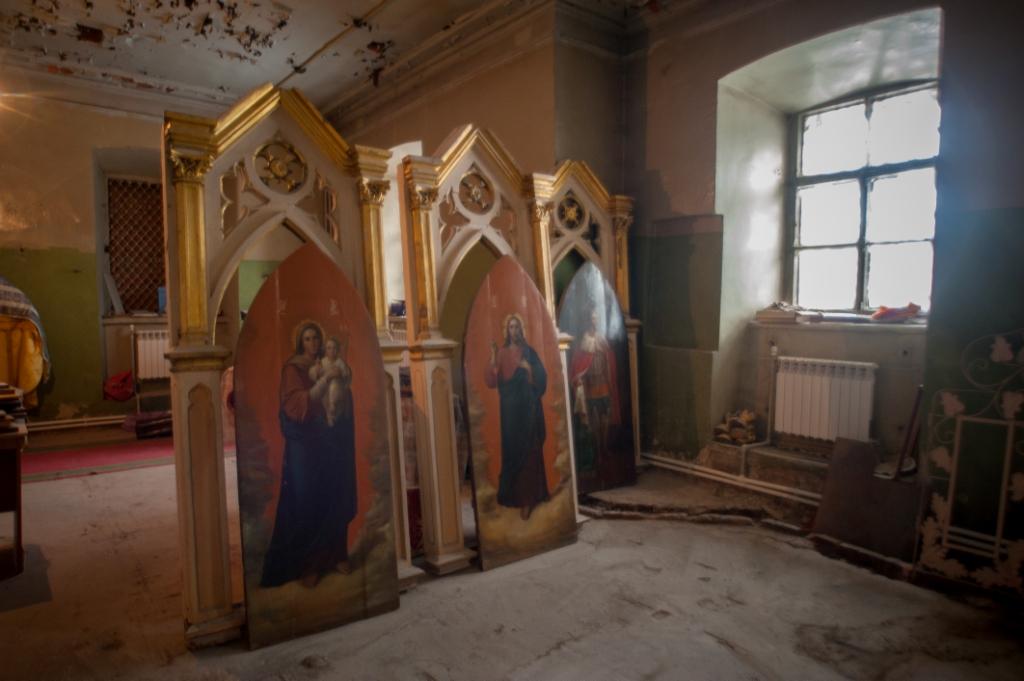 Состоит она из нескольких приделов (пристроек для дополнительного алтаря), по которым нас провел протоиерей. Приделы в грустном состоянии. Кроме единственного, на первом этаже, где сейчас проводятся службы.